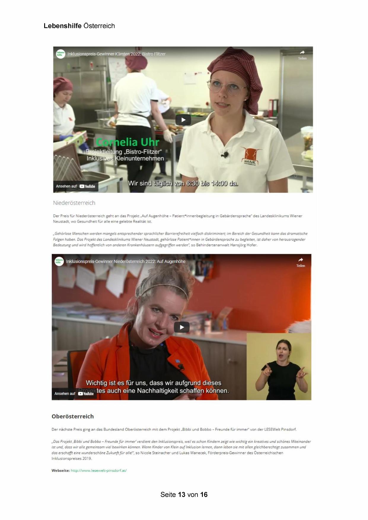 Der nächste Preis ging an das Bundesland Oberösterreich mit dem Projekt „Bibbi und Bobbo - Freunde für immer” von der LESEWelt Pinsdorf.