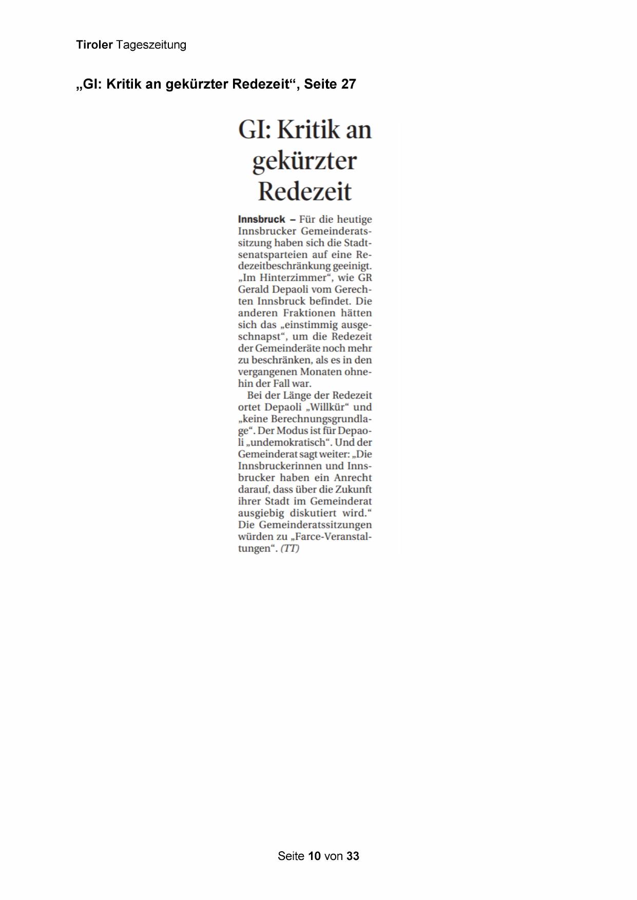 „Gl: Kritik an gekürzter Redezeit“, Seite 27