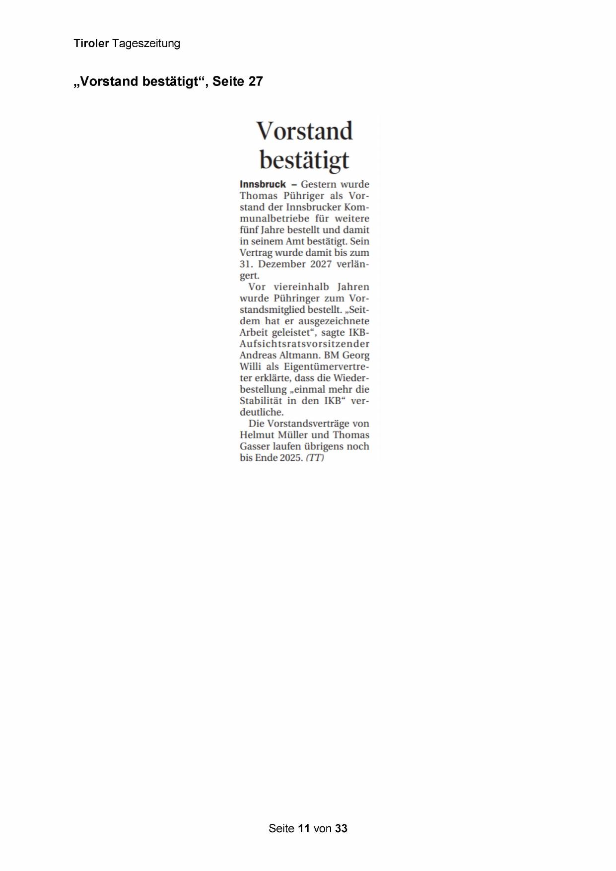 Thomas Pühriger als Vorstand der Innsbrucker Kommunalbetriebe für weitere