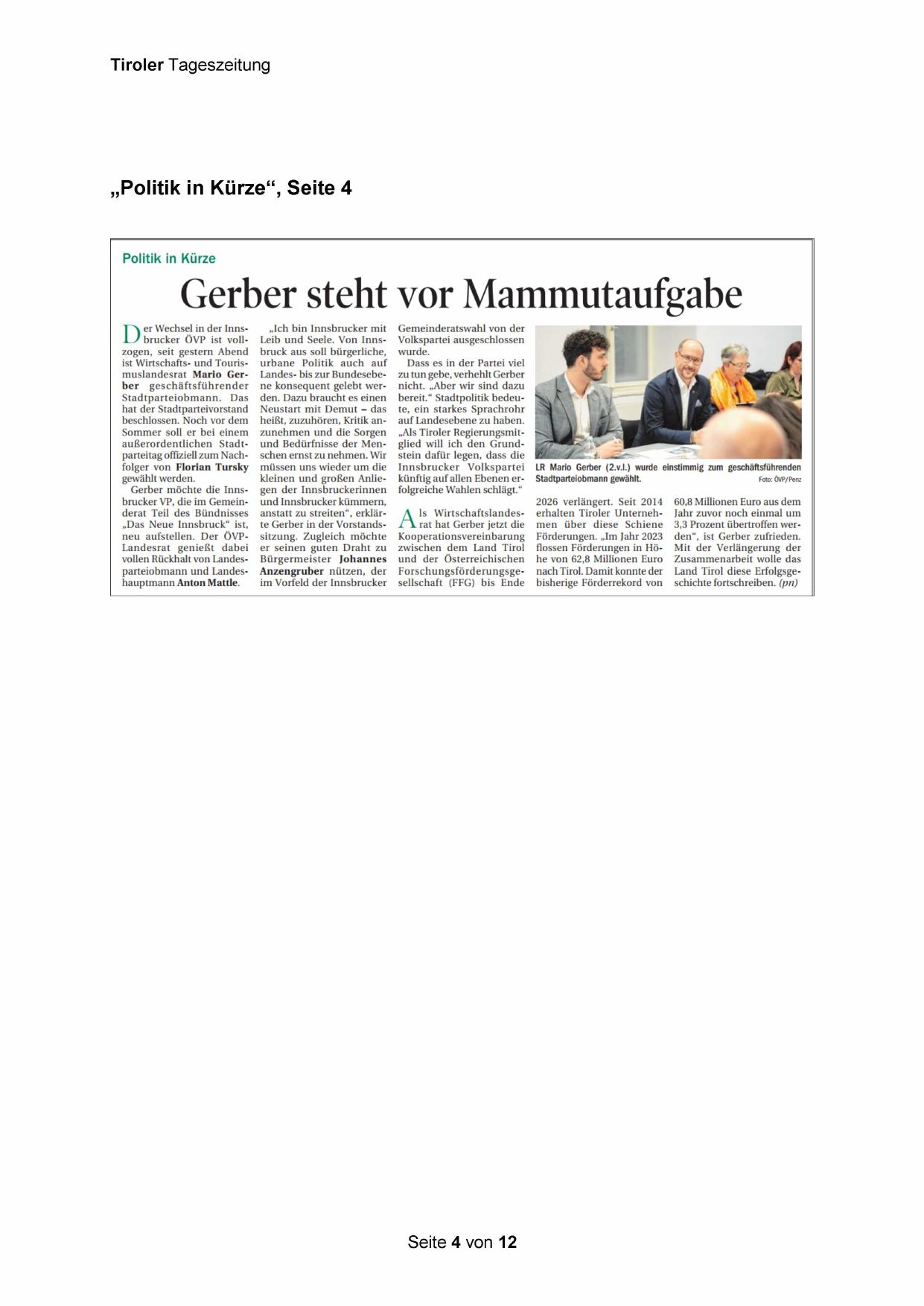 Gerber möchte die Innsbrucker VP, die im Gemeinderat Teil des Bündnisses