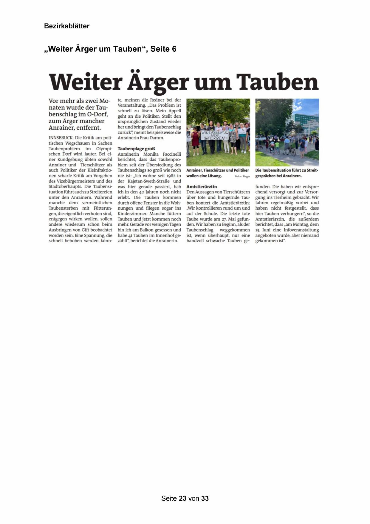 habe 41 Tauben im Innenhof gezählt“ berichtet die Anrainerin.