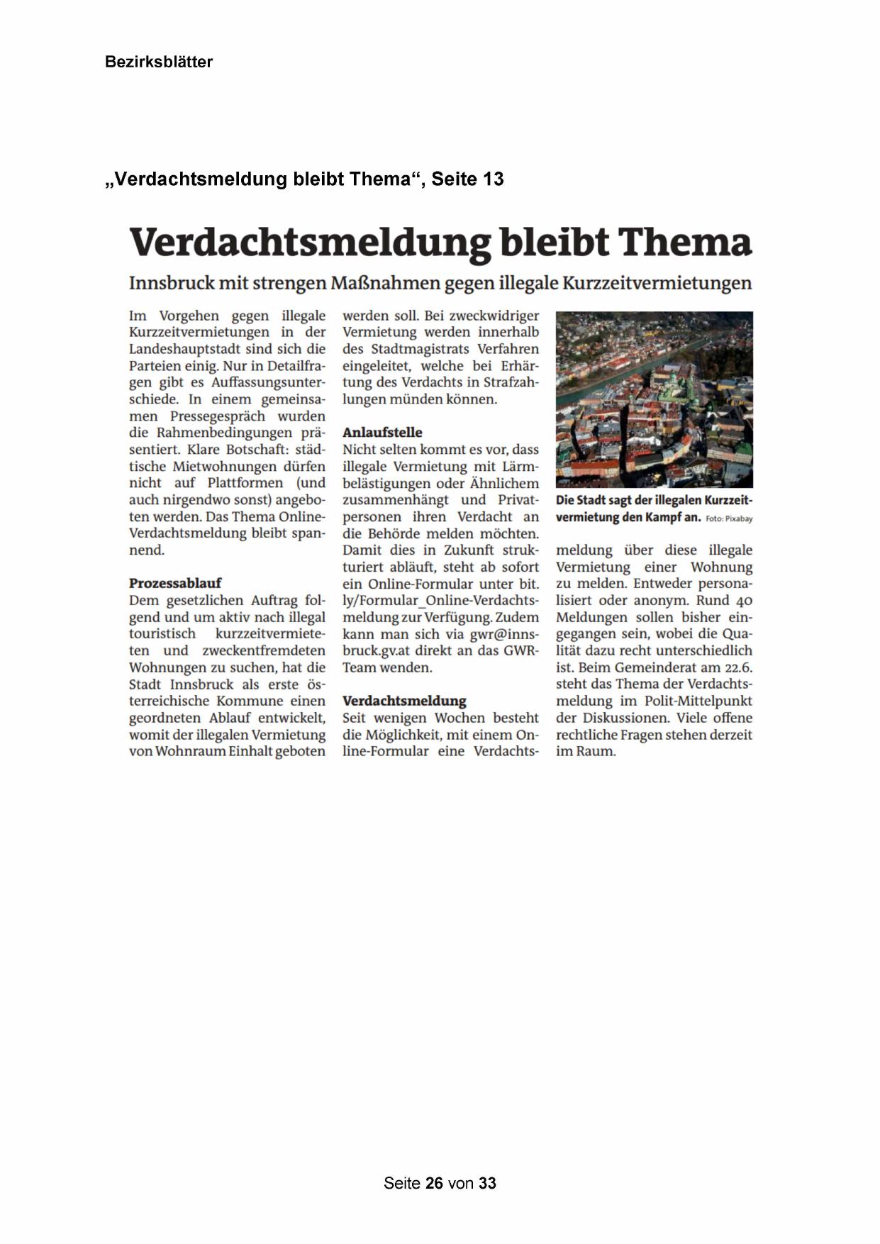 Innsbruck mit strengen Maßnahmen gegen illegale Kurzzeitvermietungen