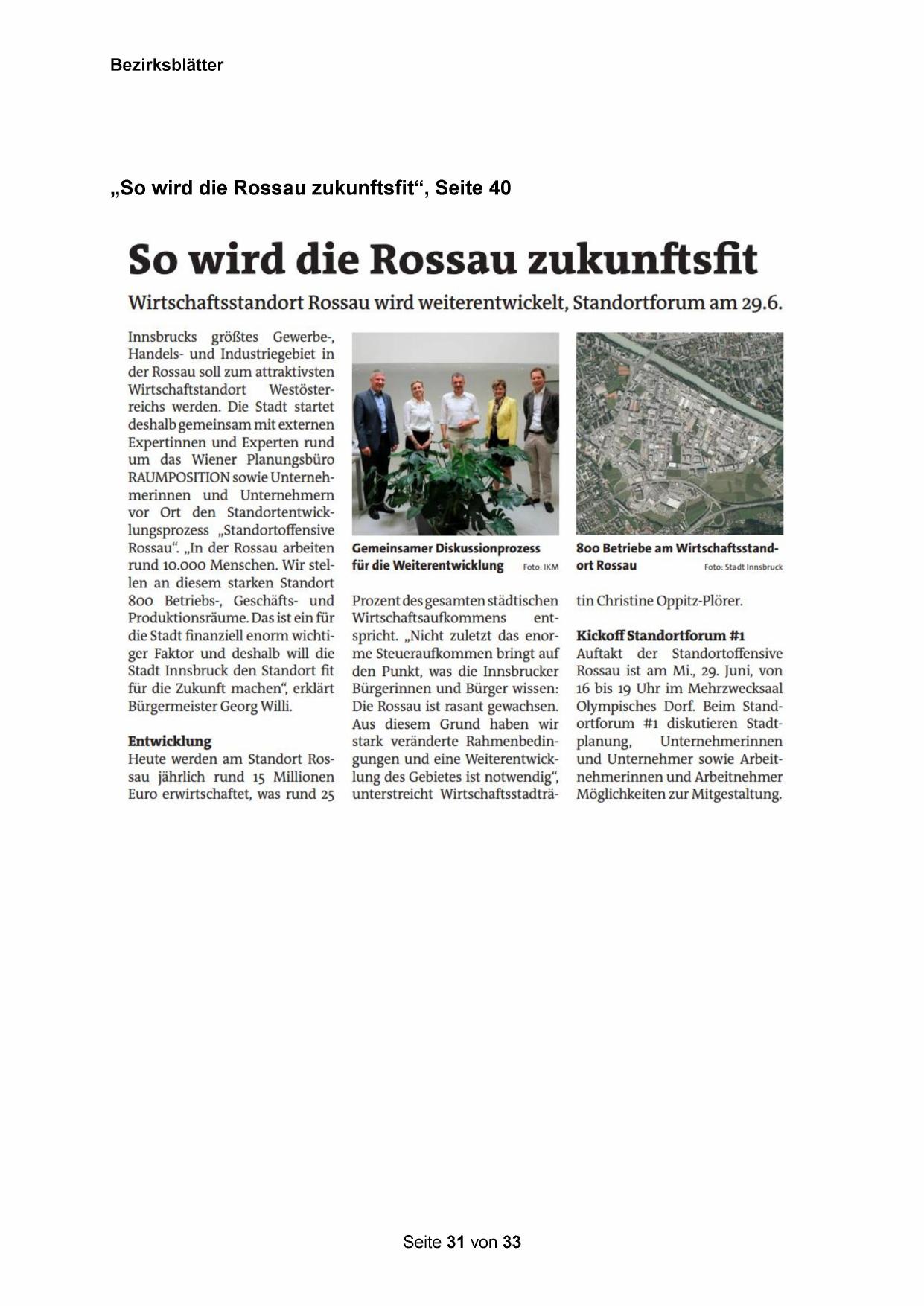 Wirtschaftsstandort Rossau wird weiterentwickelt, Standortforum am 29.6.