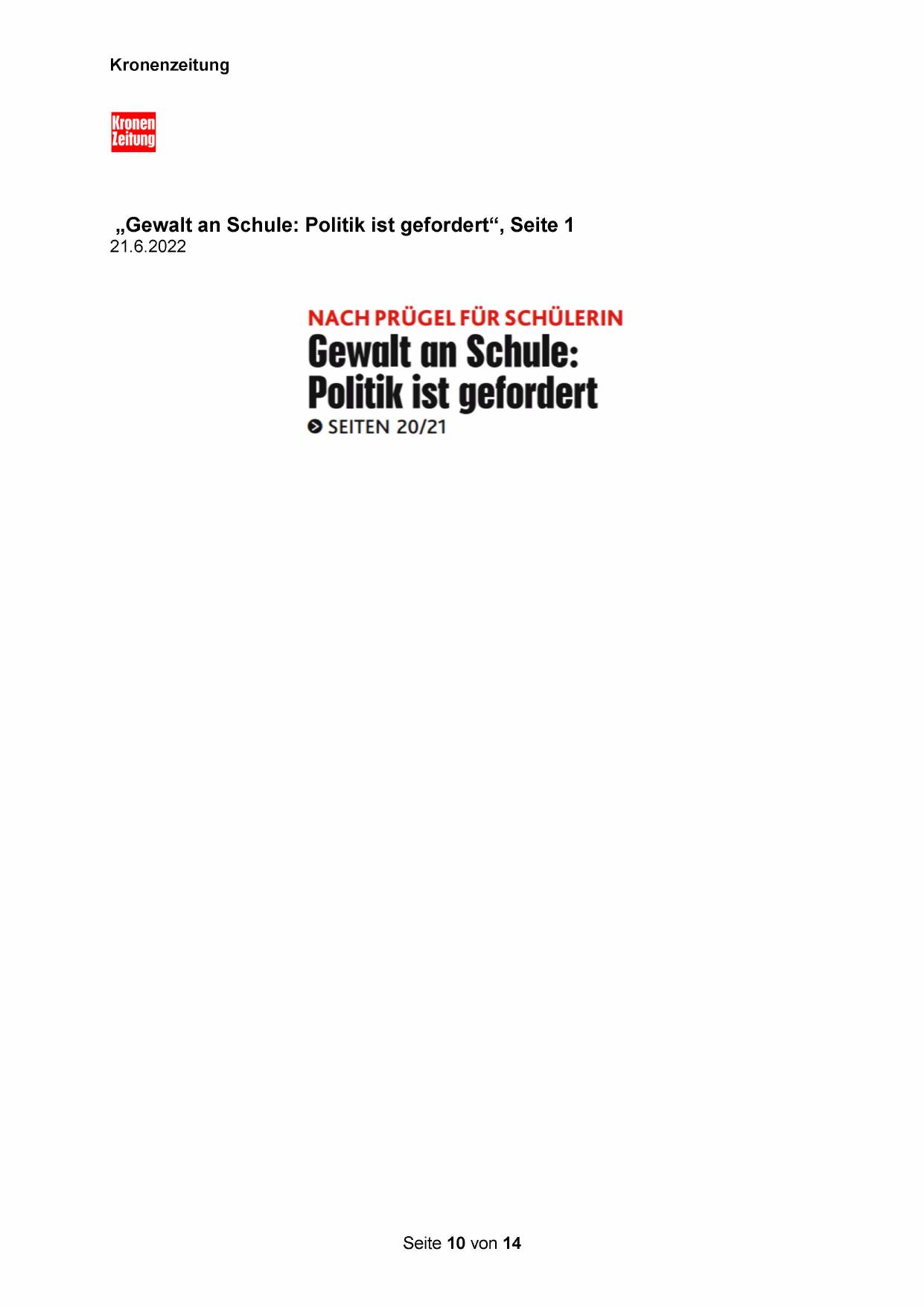 „Gewalt an Schule: Politik ist gefordert“, Seite 1