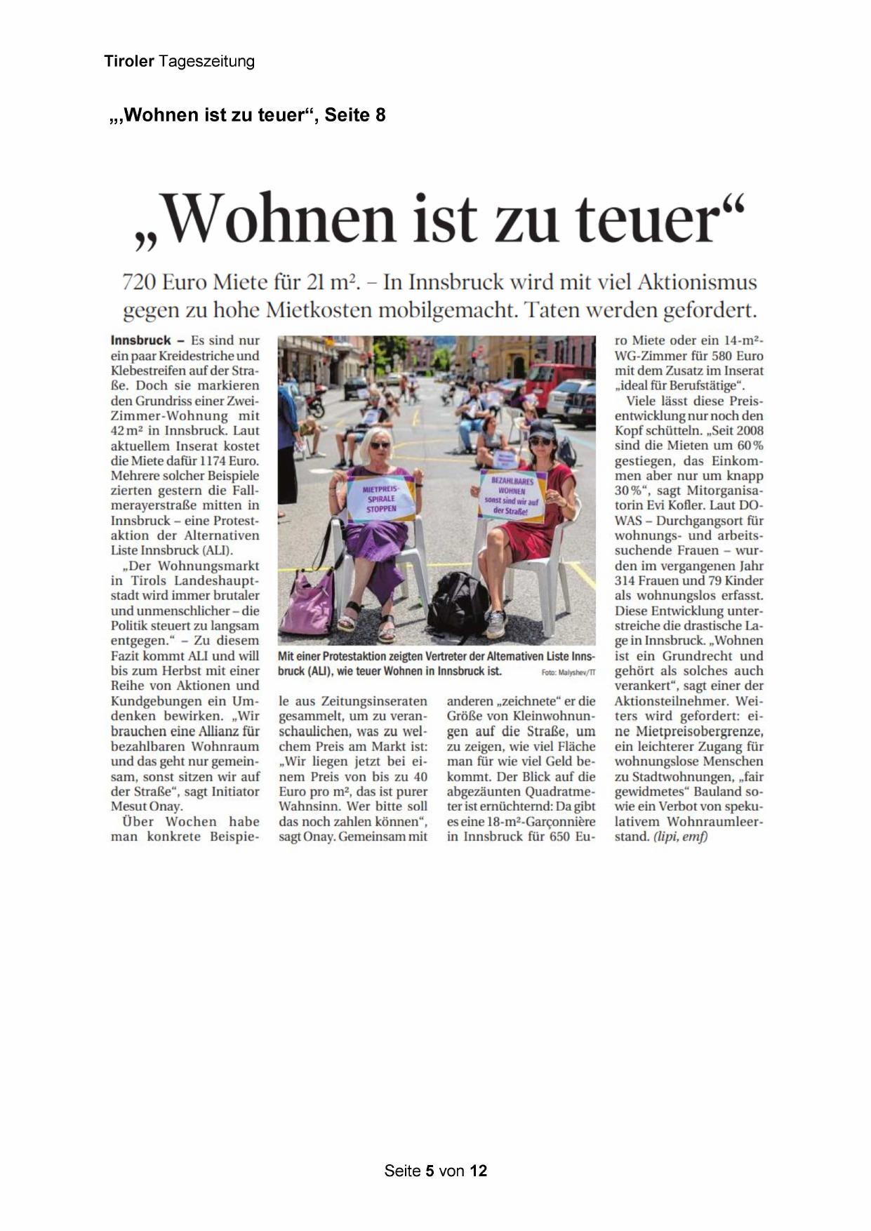 720 Euro Miete für 21 m®?. - In Innsbruck wird mit viel Aktionismus