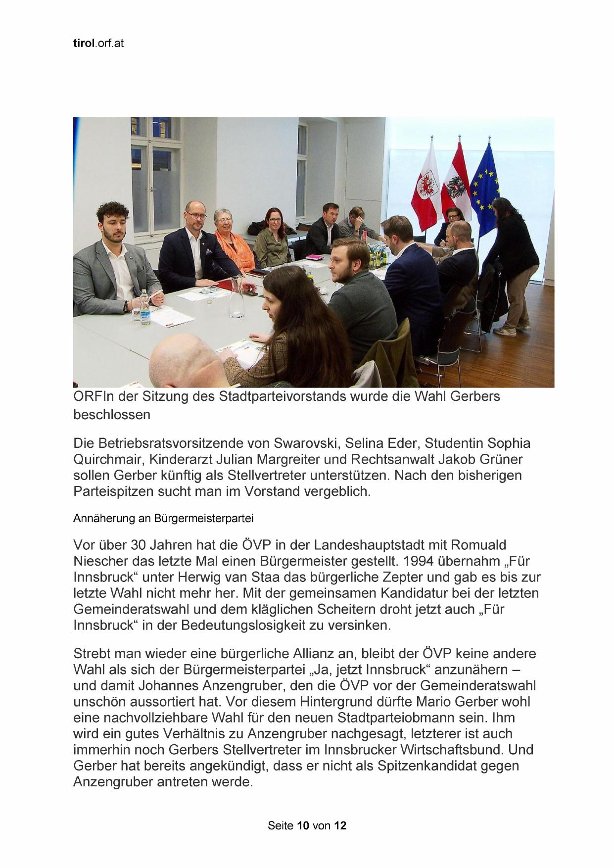 immerhin noch Gerbers Stellvertreter im Innsbrucker Wirtschaftsbund. Und