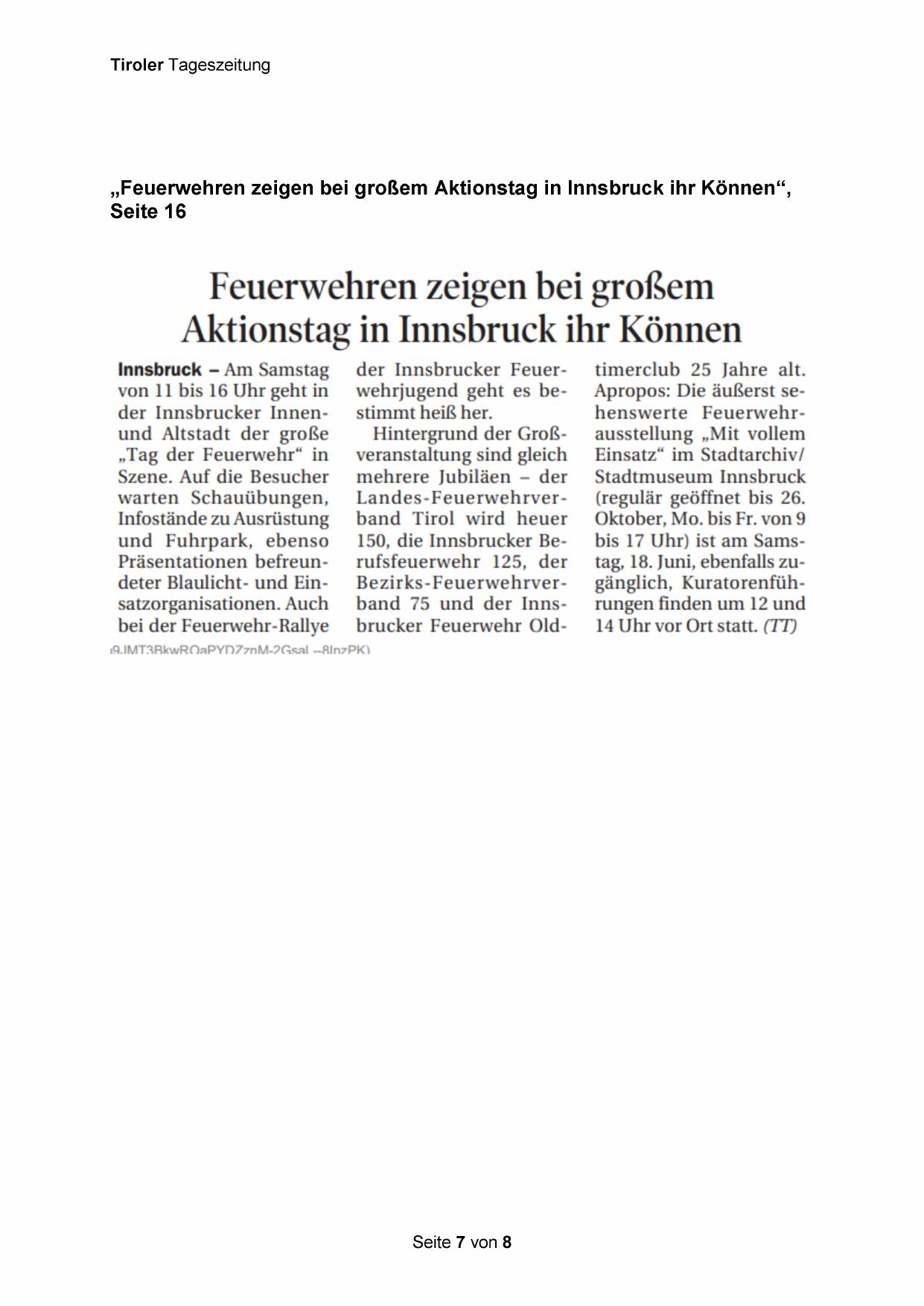 „Feuerwehren zeigen bei großem Aktionstag in Innsbruck ihr Können“,