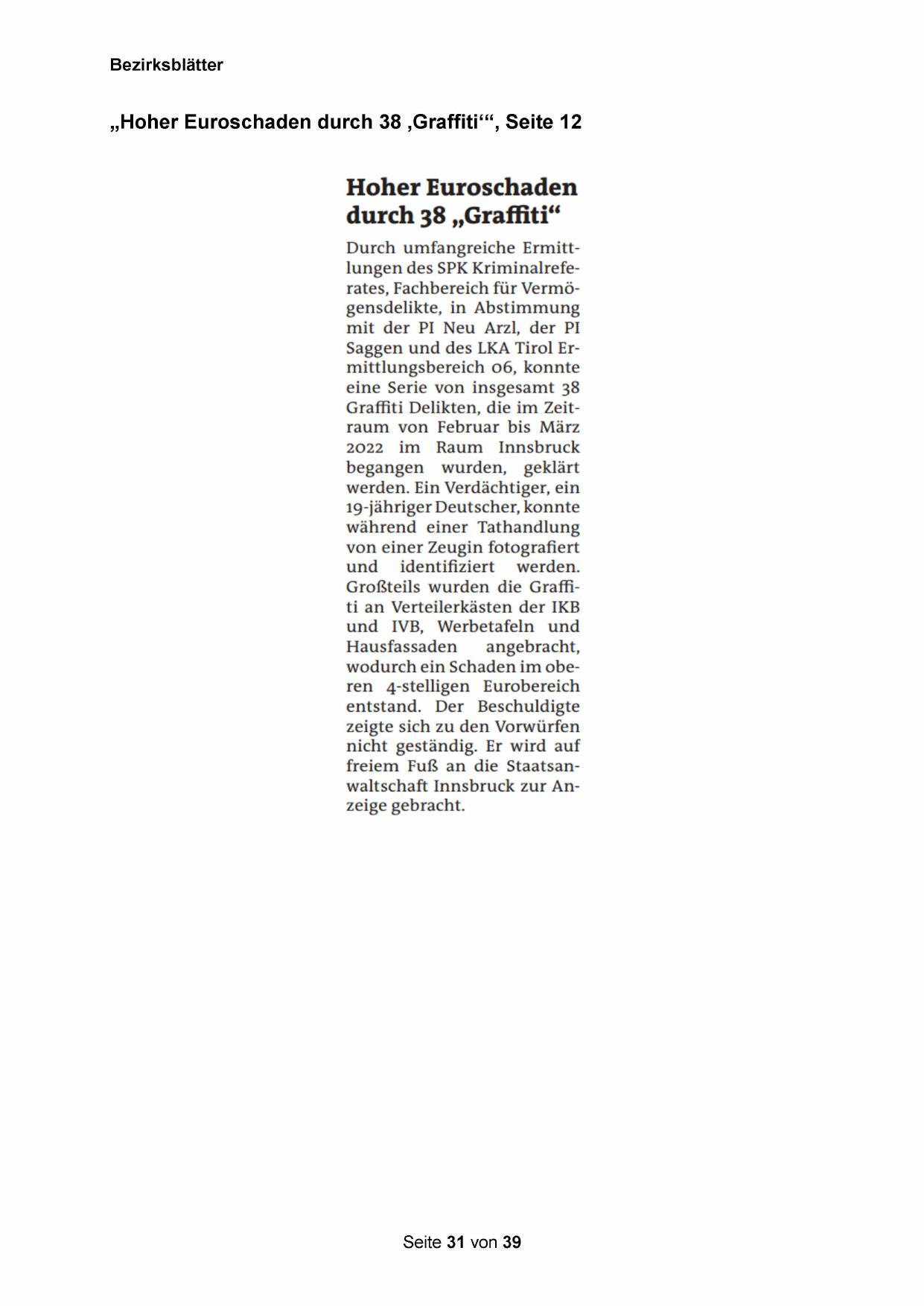 „Hoher Euroschaden durch 38 ‚Graffiti‘““, Seite 12