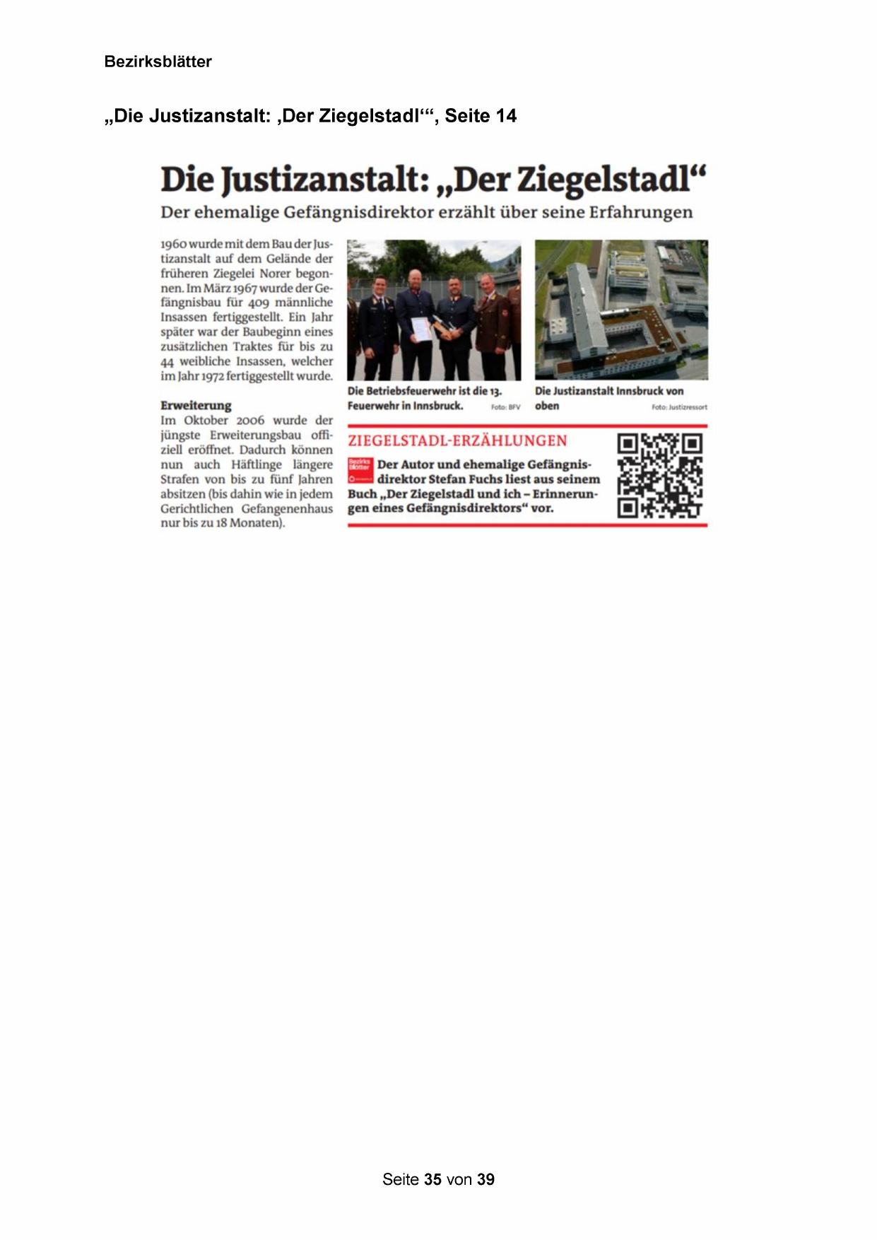 Die Betriebsfeuerwehr ist die 13. Die Justizanstalt Innsbruck von