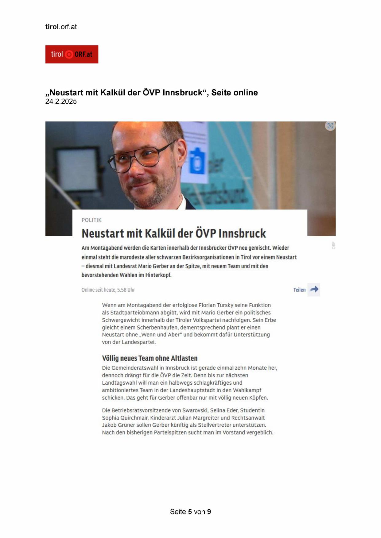 „Neustart mit Kalkül der ÖVP Innsbruck“, Seite online
