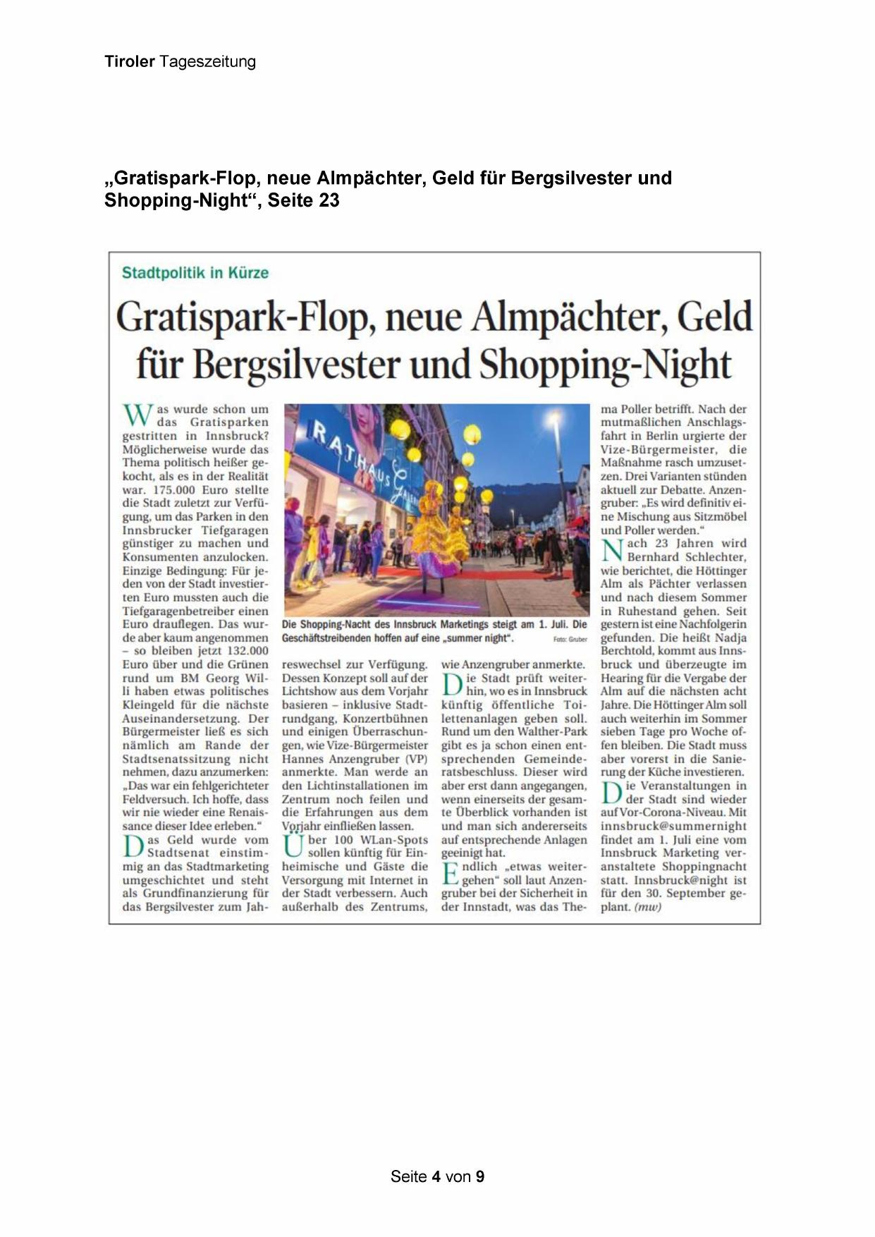 „Gratispark-Flop, neue Almpächter, Geld für Bergsilvester und