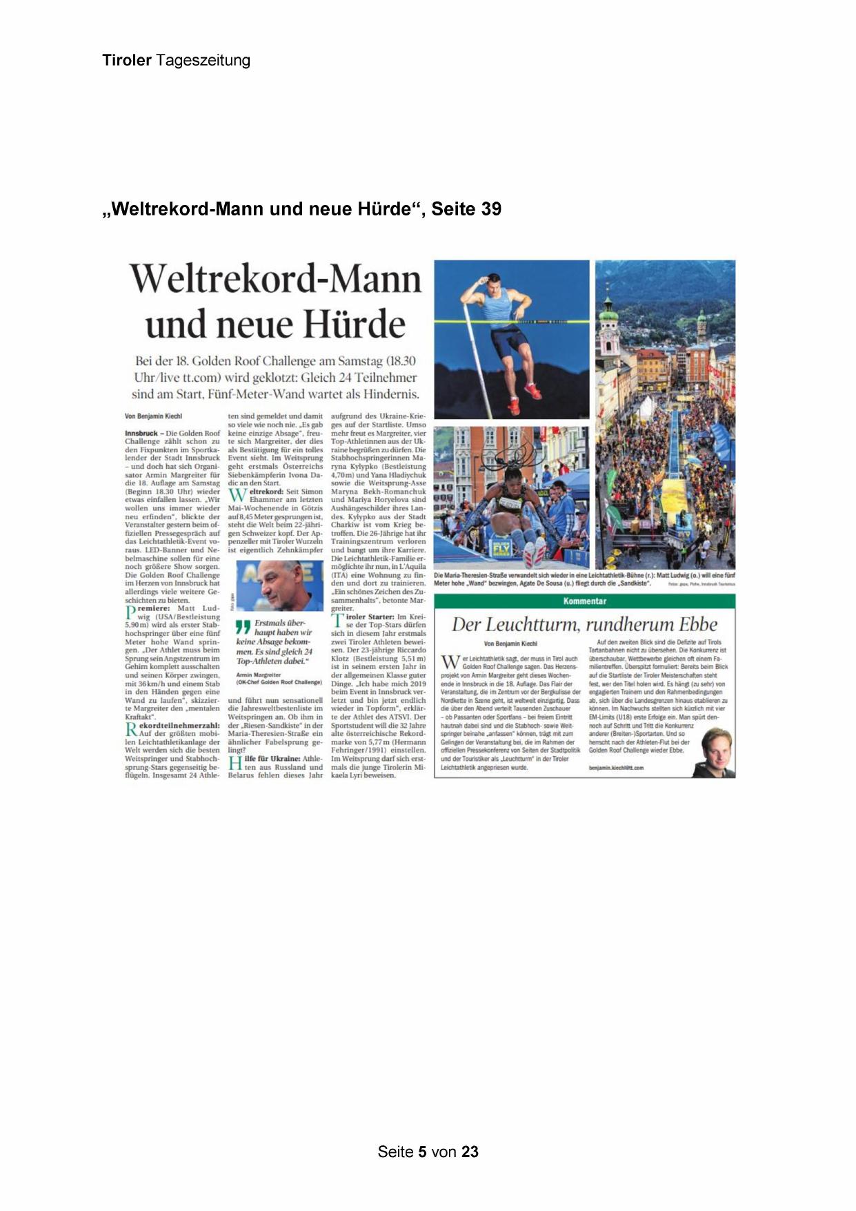 „Weltrekord-Mann und neue Hürde“, Seite 39