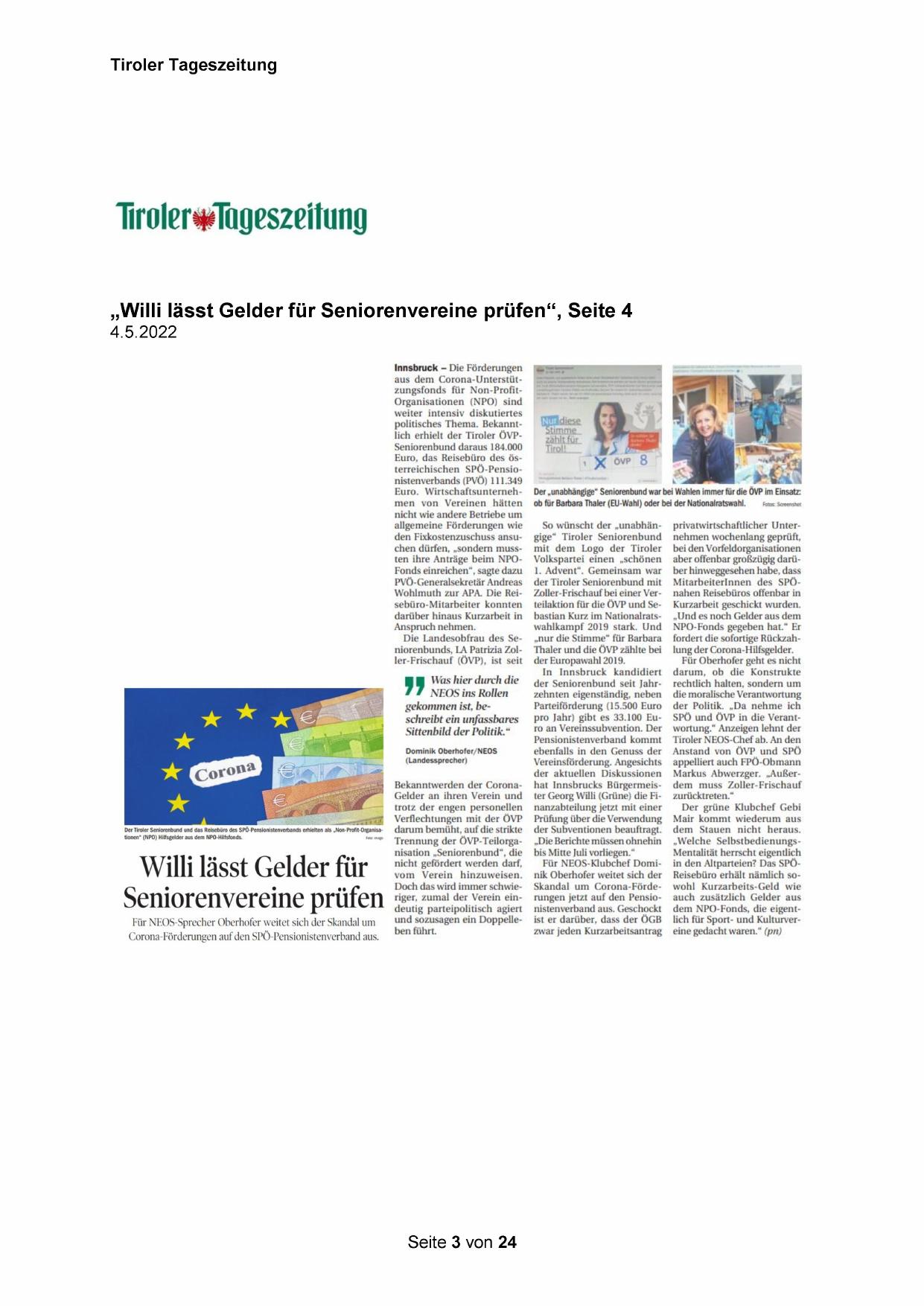 Für NEOS-Sprecher Oberhofer weitet sich der Skandal um