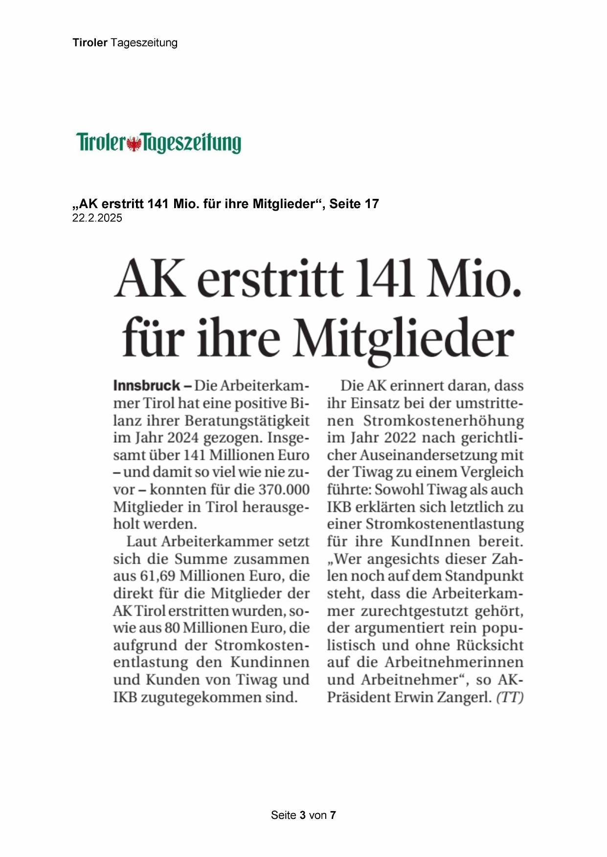 „AK erstritt 141 Mio. für ihre Mitglieder“, Seite 17