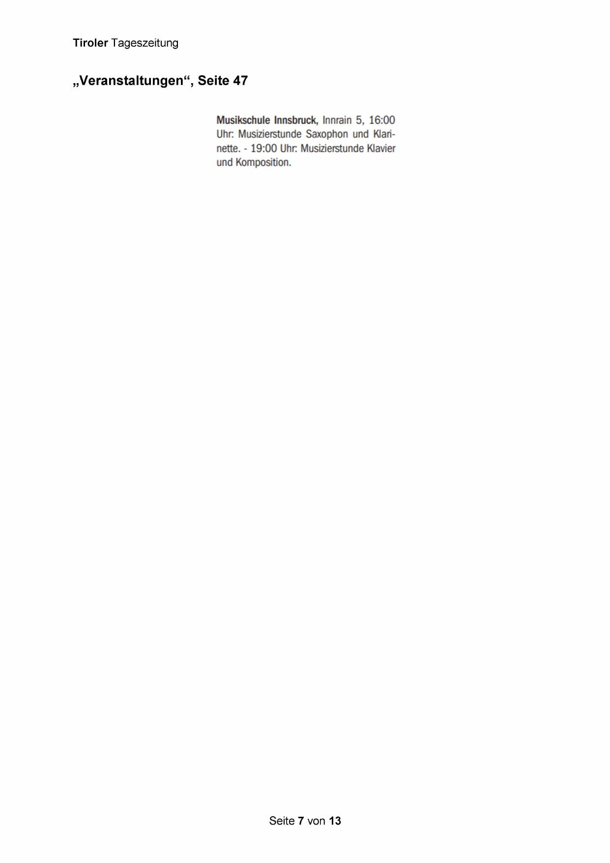 Uhr: Musizierstunde Saxophon und Klarinette. - 19:00 Uhr: Musizierstunde Klavier