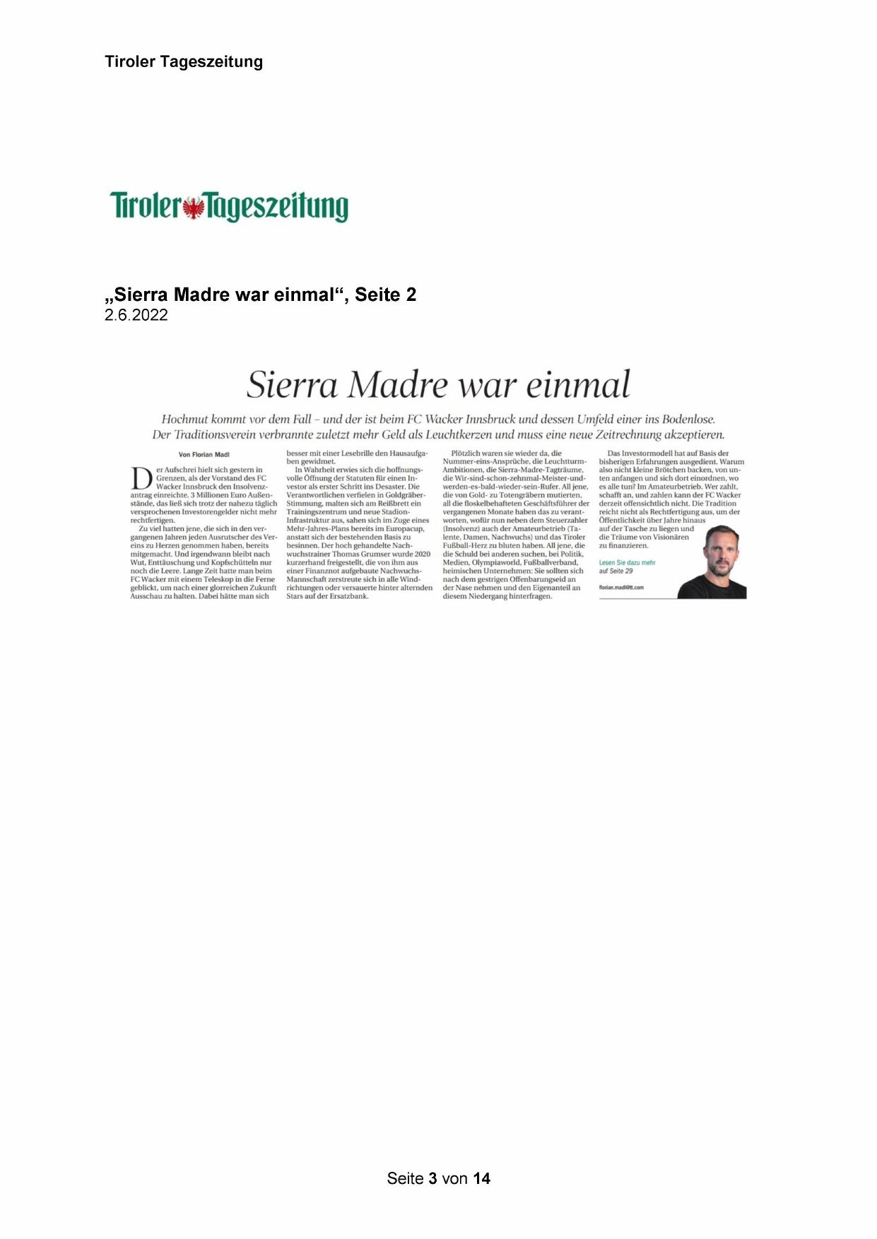 Wacker Innsbruck den Insolvenzantrag einreichte. 3 Millionen Euro Außenstände, das ließ sich trotz der nahezu täglich