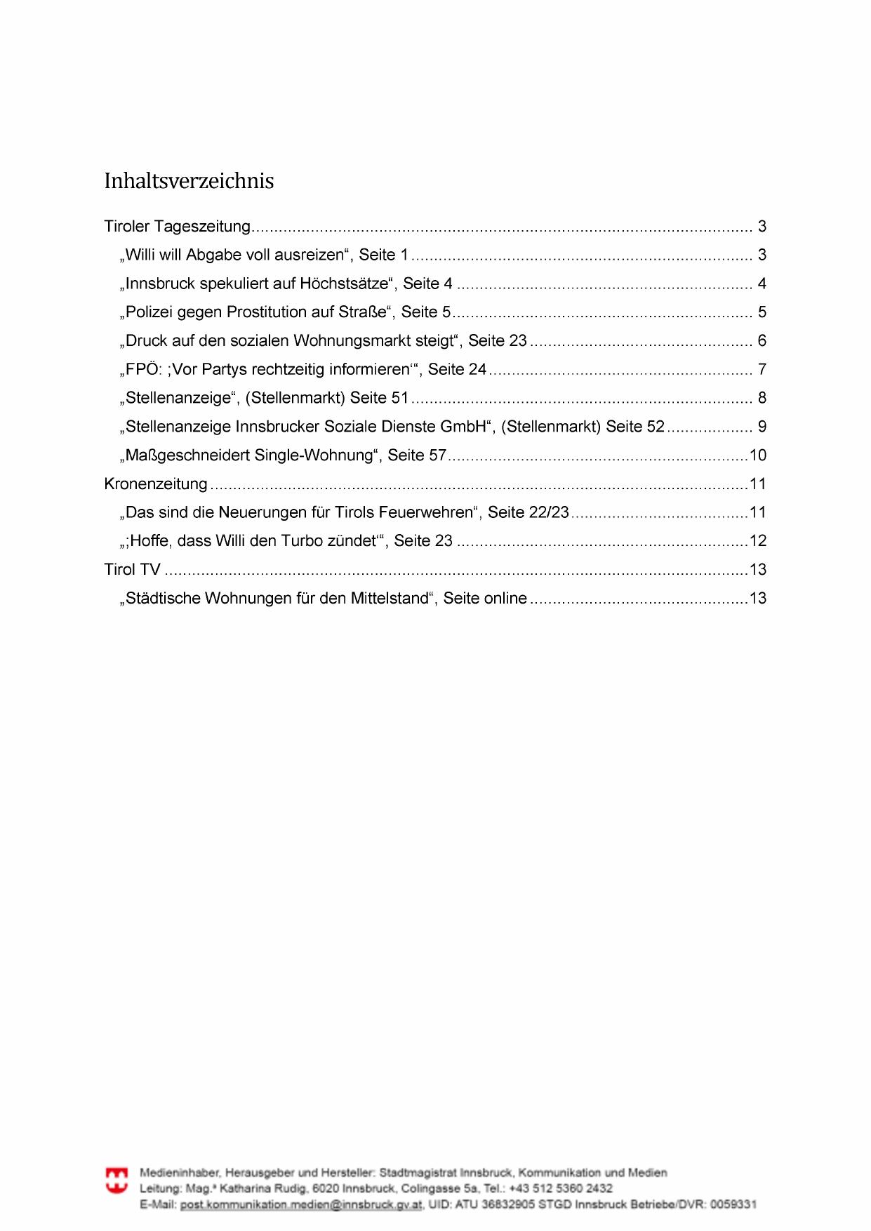 „Stellenanzeige Innsbrucker Soziale Dienste GmbH“, (Stellenmarkt) Seite 52................... 9