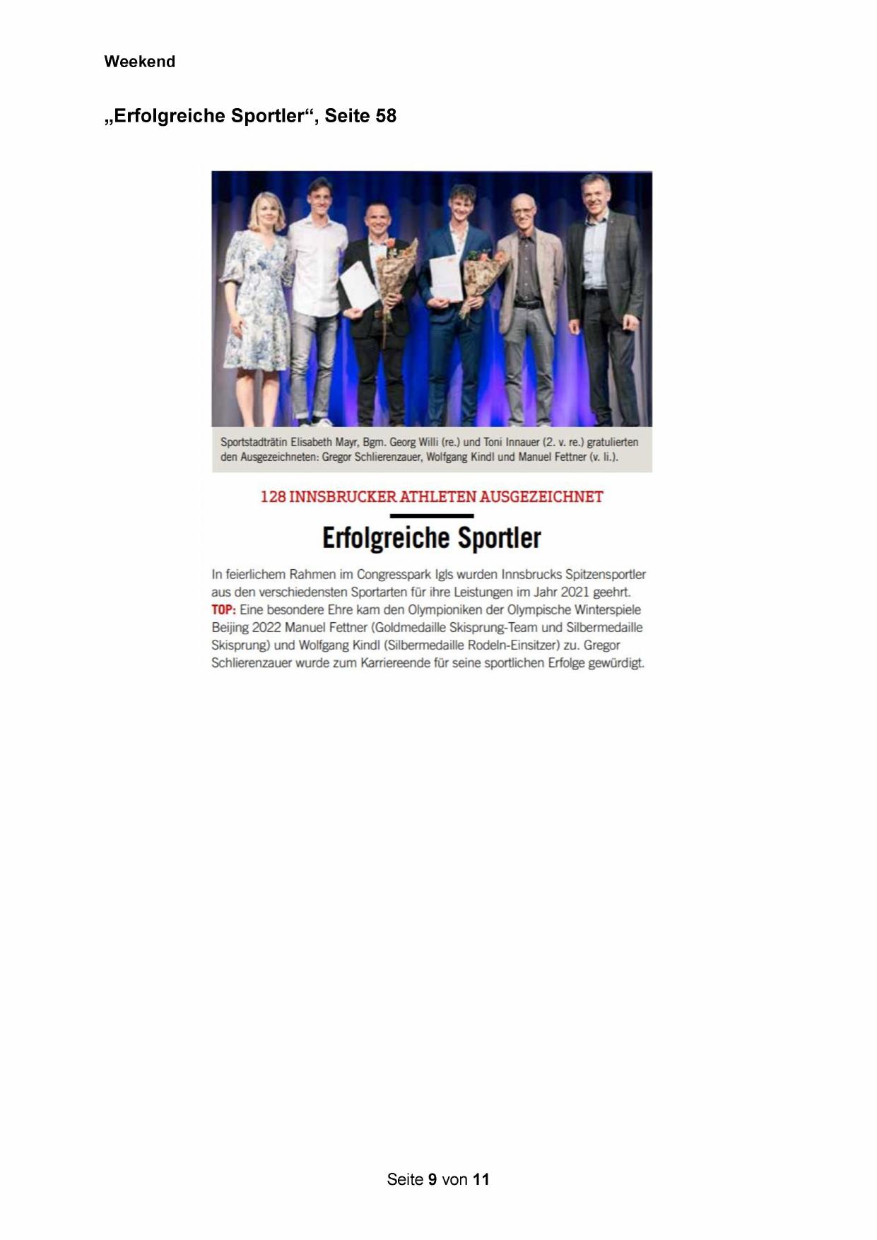 Skisprung) und Wolfgang Kindl (Silbermedaille Rodeln-Einsitzer) zu. Gregor