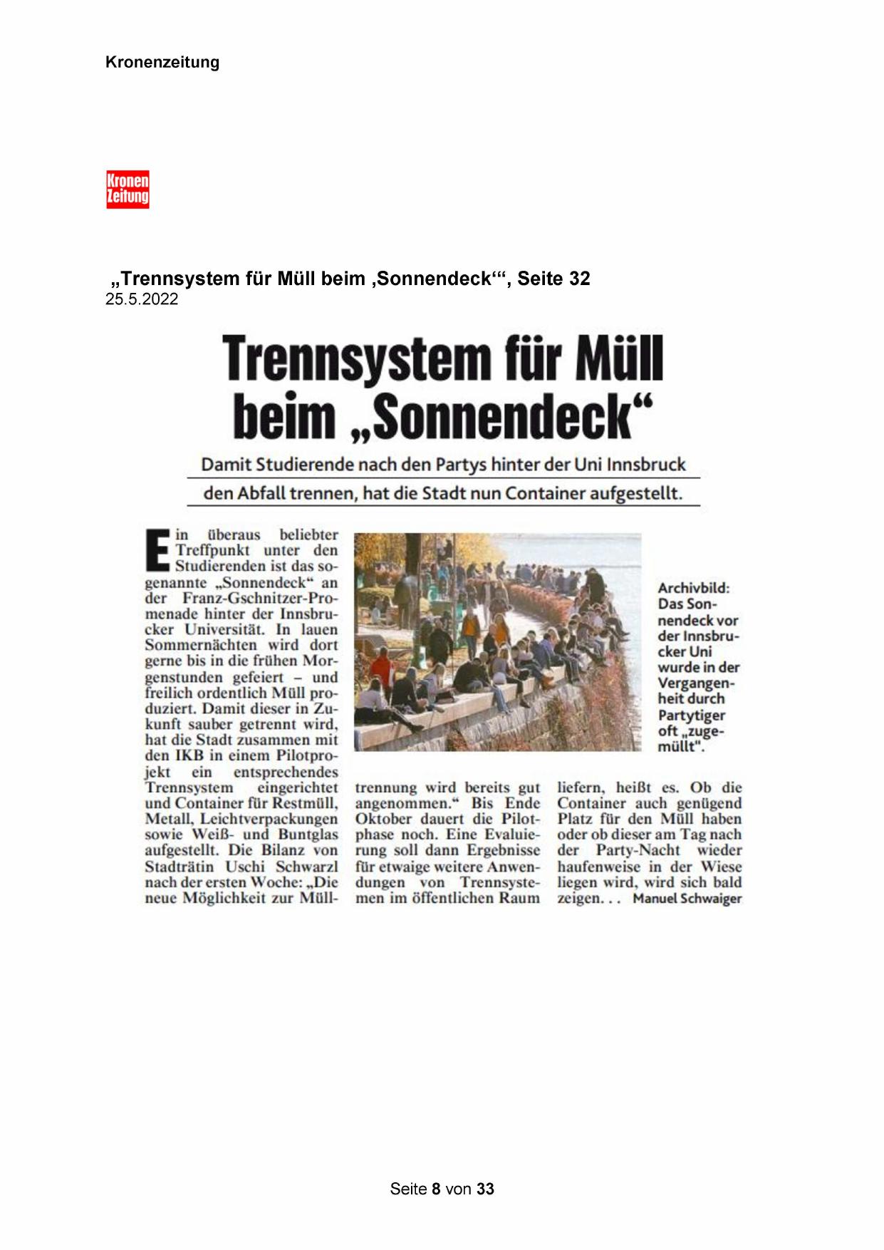 „Trennsystem für Müll beim ‚Sonnendeck‘““, Seite 32