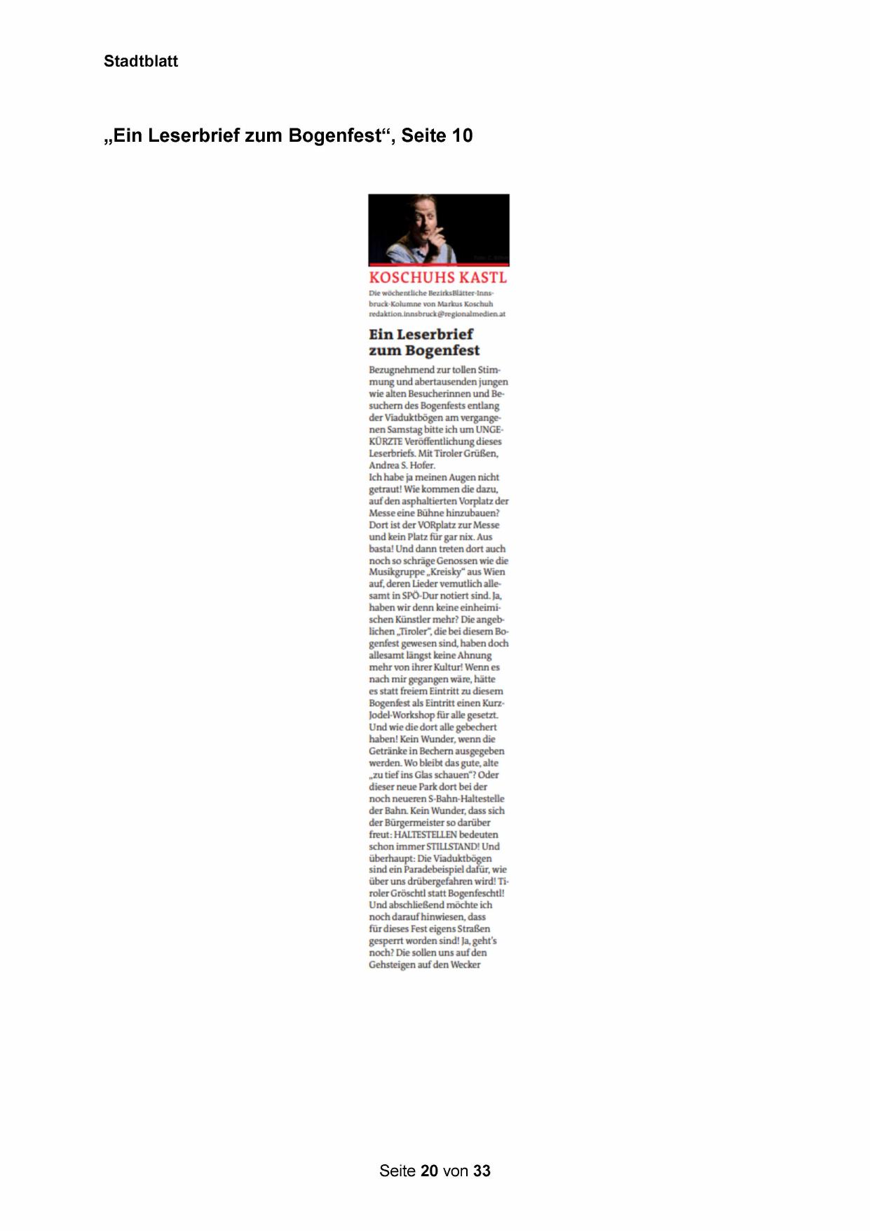 „Ein Leserbrief zum Bogenfest“, Seite 10