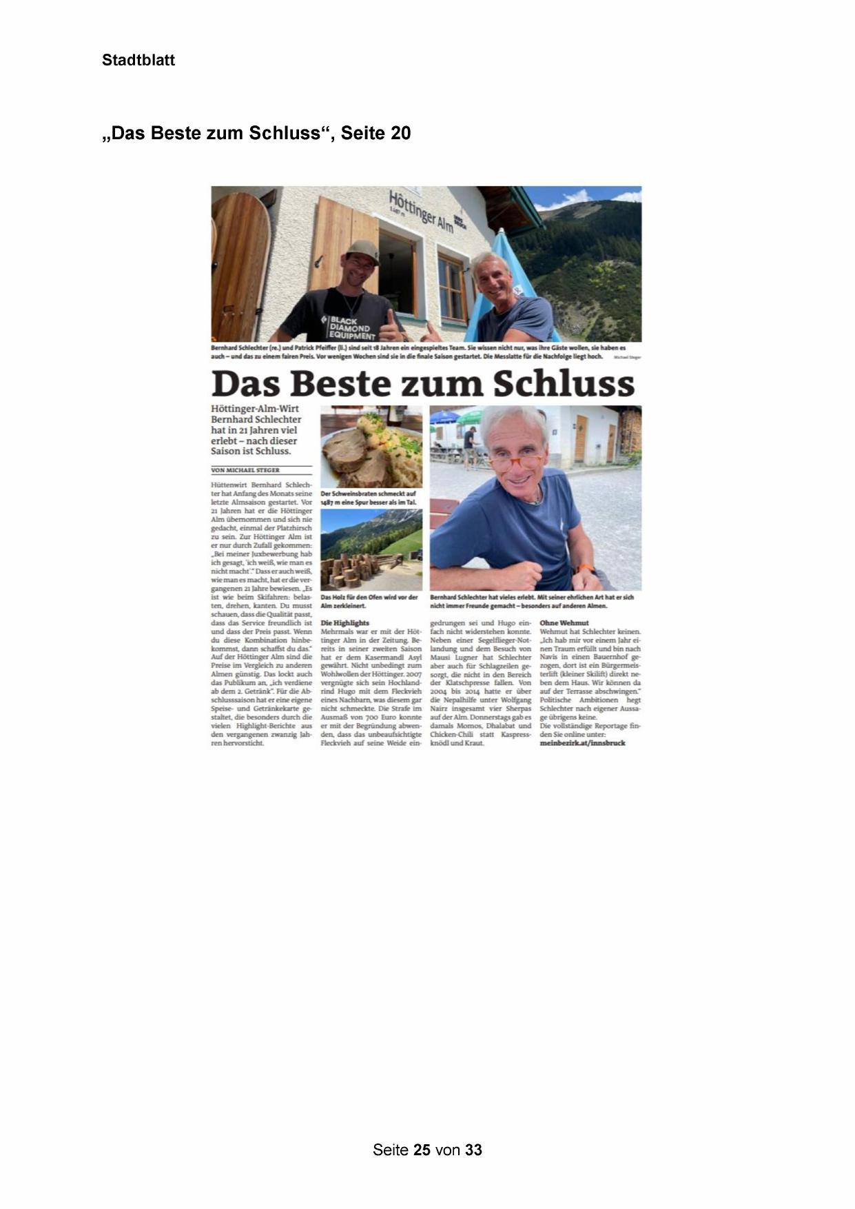 tinger Alm in der Zeitung. Bereits in seiner zweiten Saison