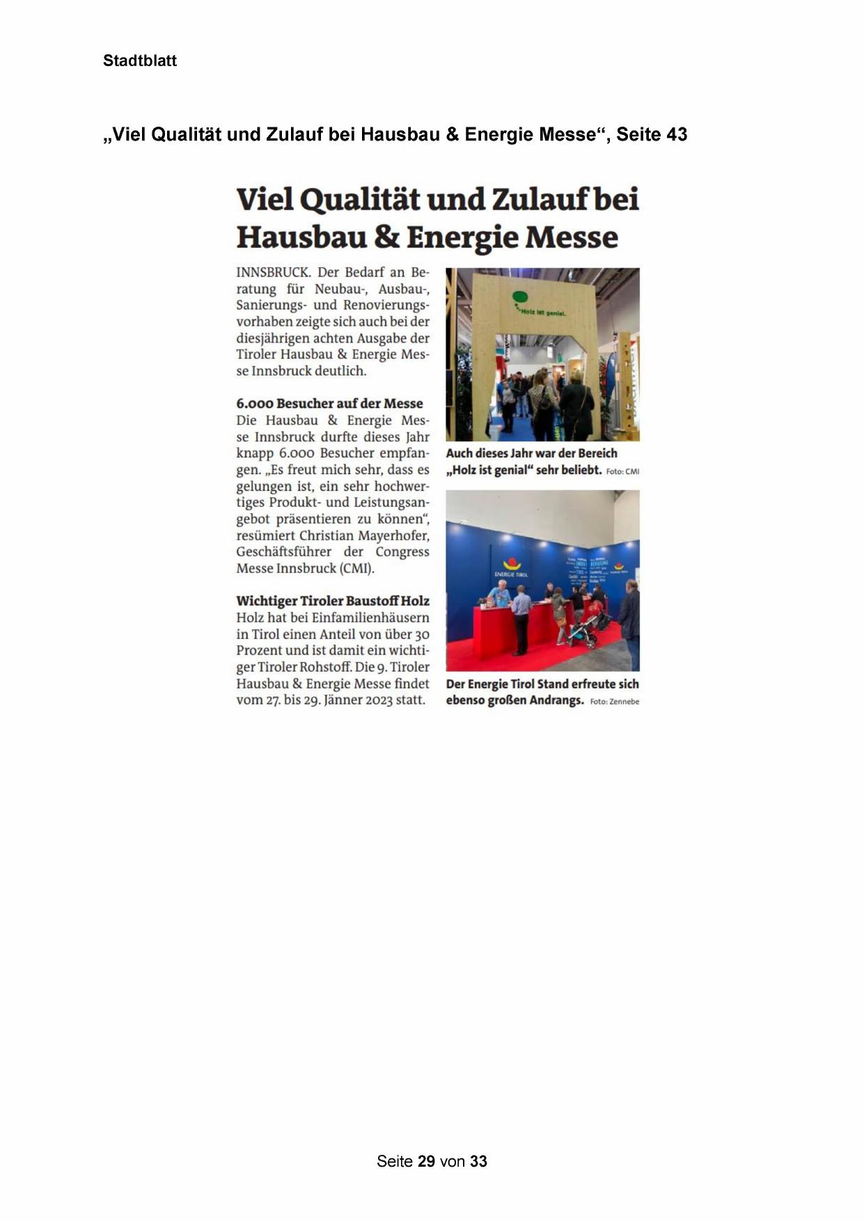 Tiroler Hausbau & Energie Messe Innsbruck deutlich.