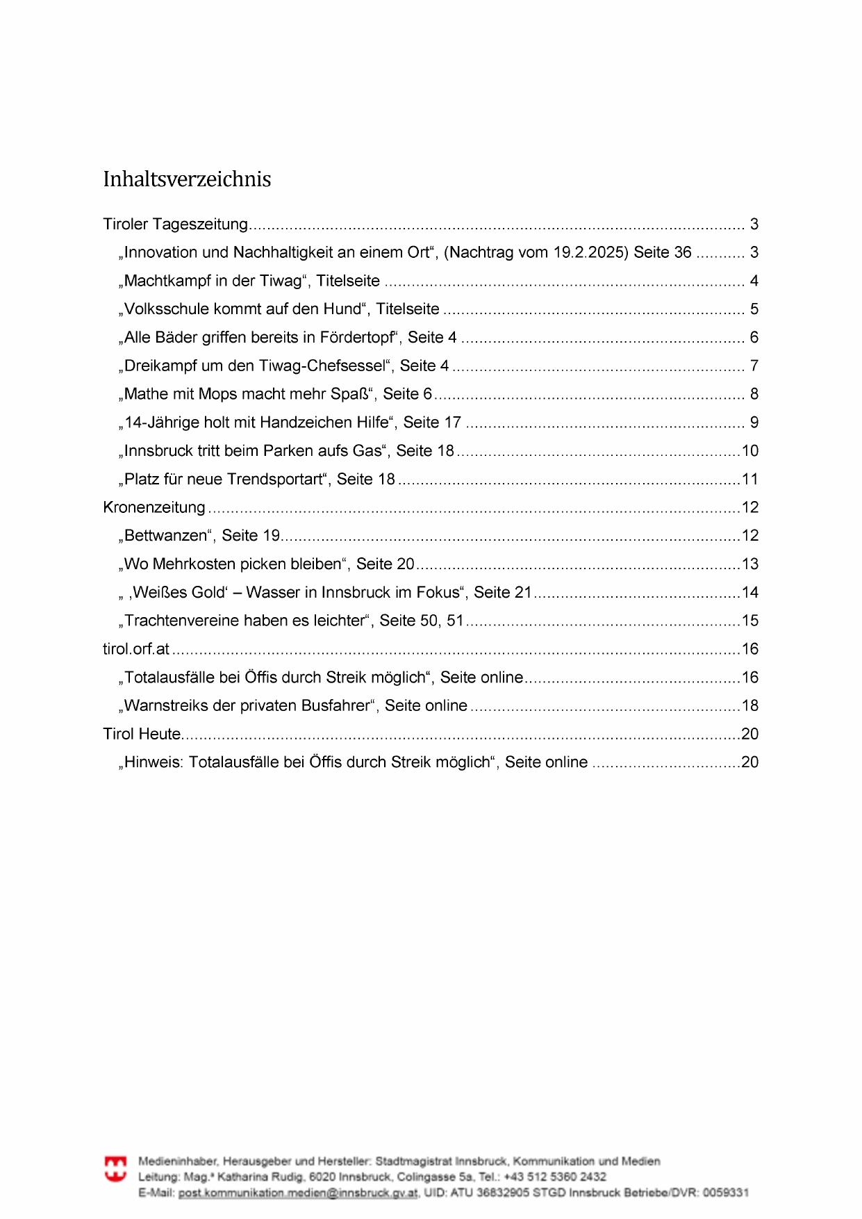 Medieninhaber, Herausgeber und Hersteller: Stadtmagistrat Innsbruck, Kommunikation und Medien