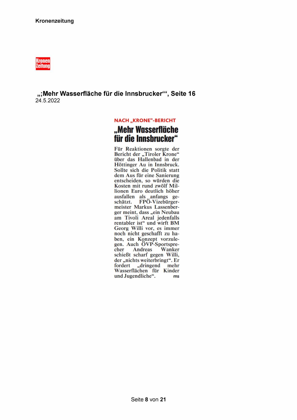 „;Mehr Wasserfläche für die Innsbrucker‘“, Seite 16