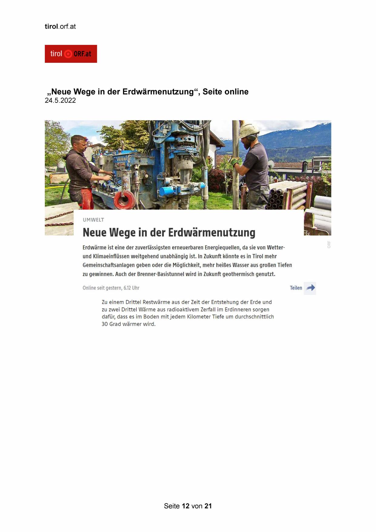 „Neue Wege in der Erdwärmenutzung“, Seite online