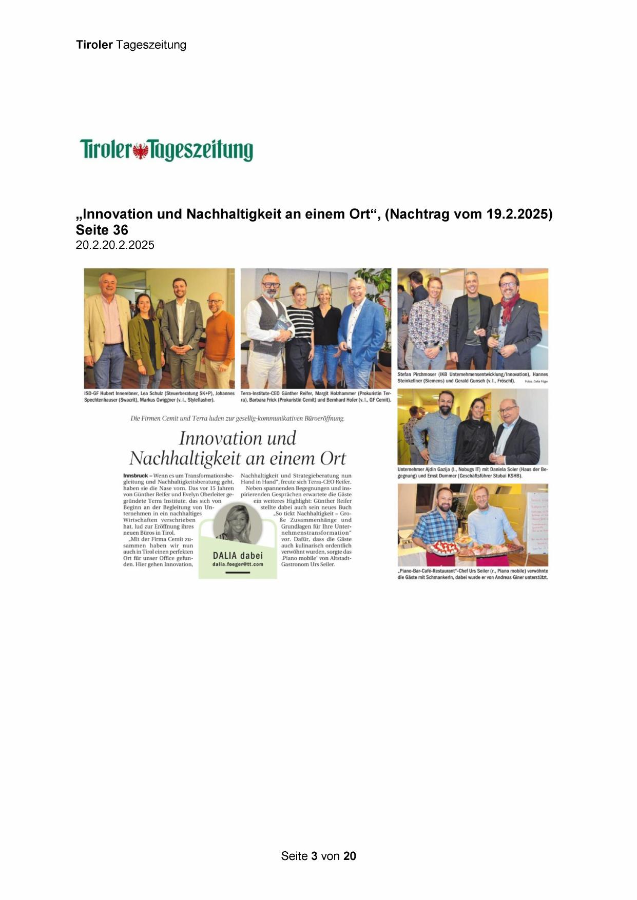 „Innovation und Nachhaltigkeit an einem Ort“, (Nachtrag vom 19.2.2025)