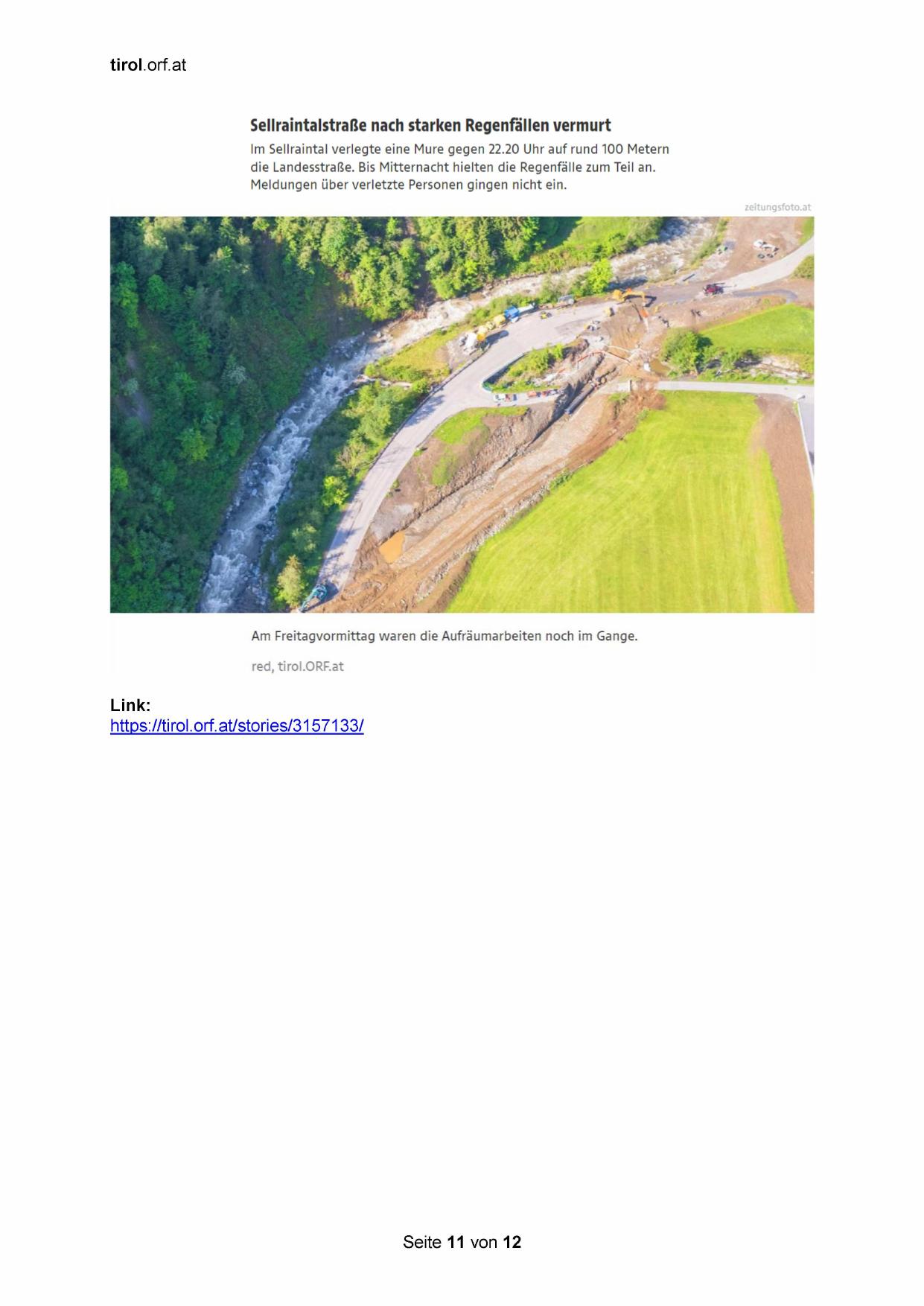 Im Sellraintal verlegte eine Mure gegen 22.20 Uhr auf rund 100 Metern
