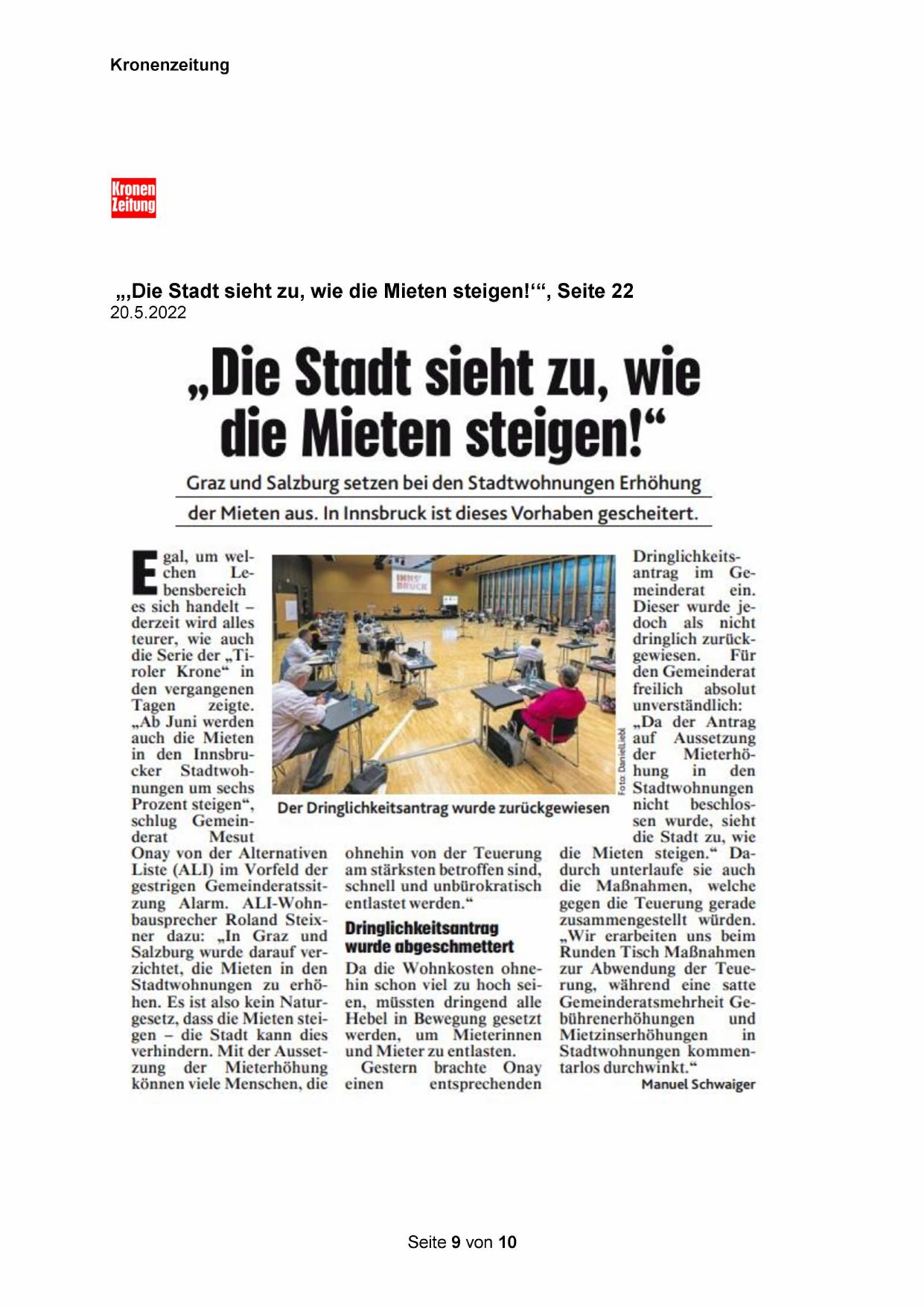 der Mieten aus. In Innsbruck ist dieses Vorhaben gescheitert.