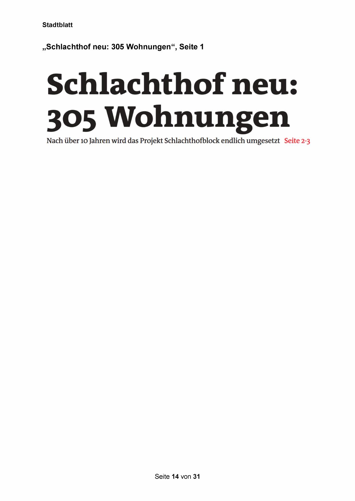 „Schlachthof neu: 305 Wohnungen“), Seite 1
