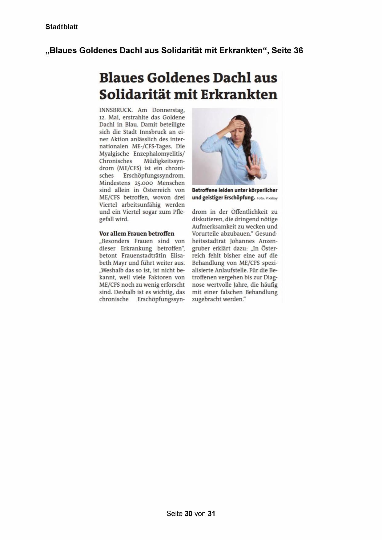 sich die Stadt Innsbruck an einer Aktion anlässlich des internationalen ME-/CFS-Tages. Die
