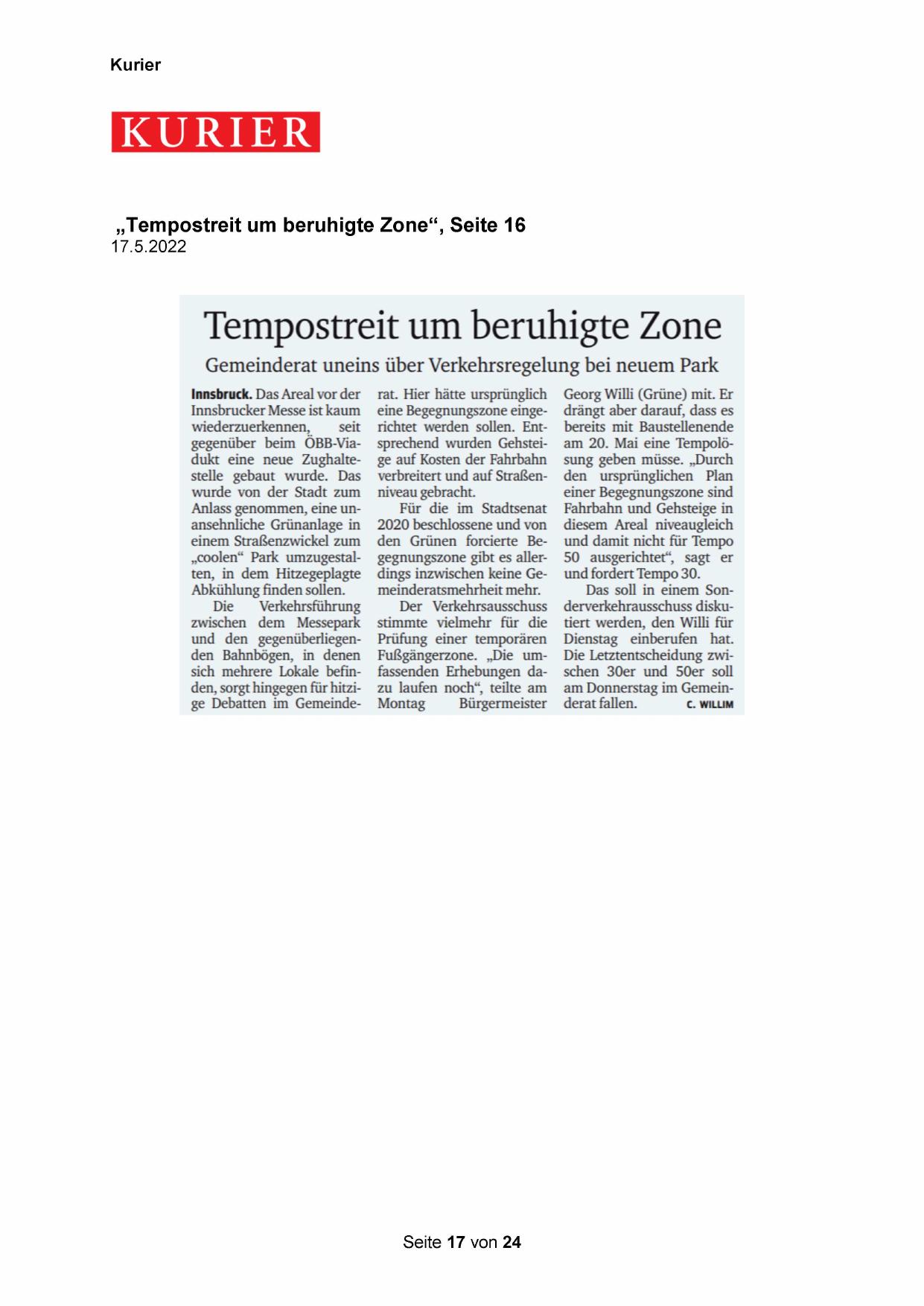 „Tempostreit um beruhigte Zone“, Seite 16