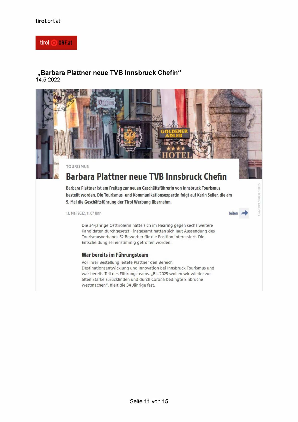 „Barbara Plattner neue TVB Innsbruck Chefin“