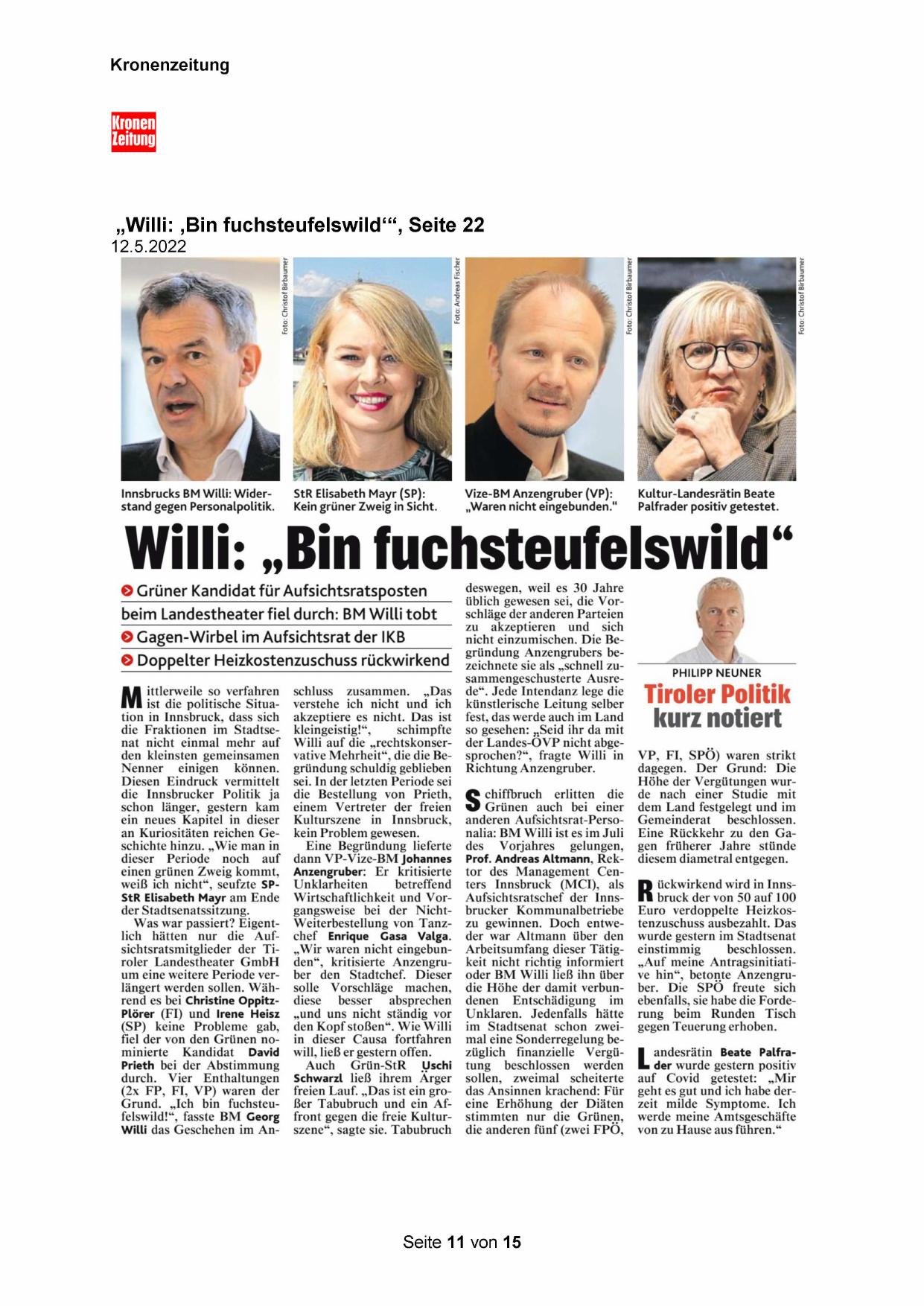 Innsbrucks BM Willi: Widerstand gegen Personalpolitik.