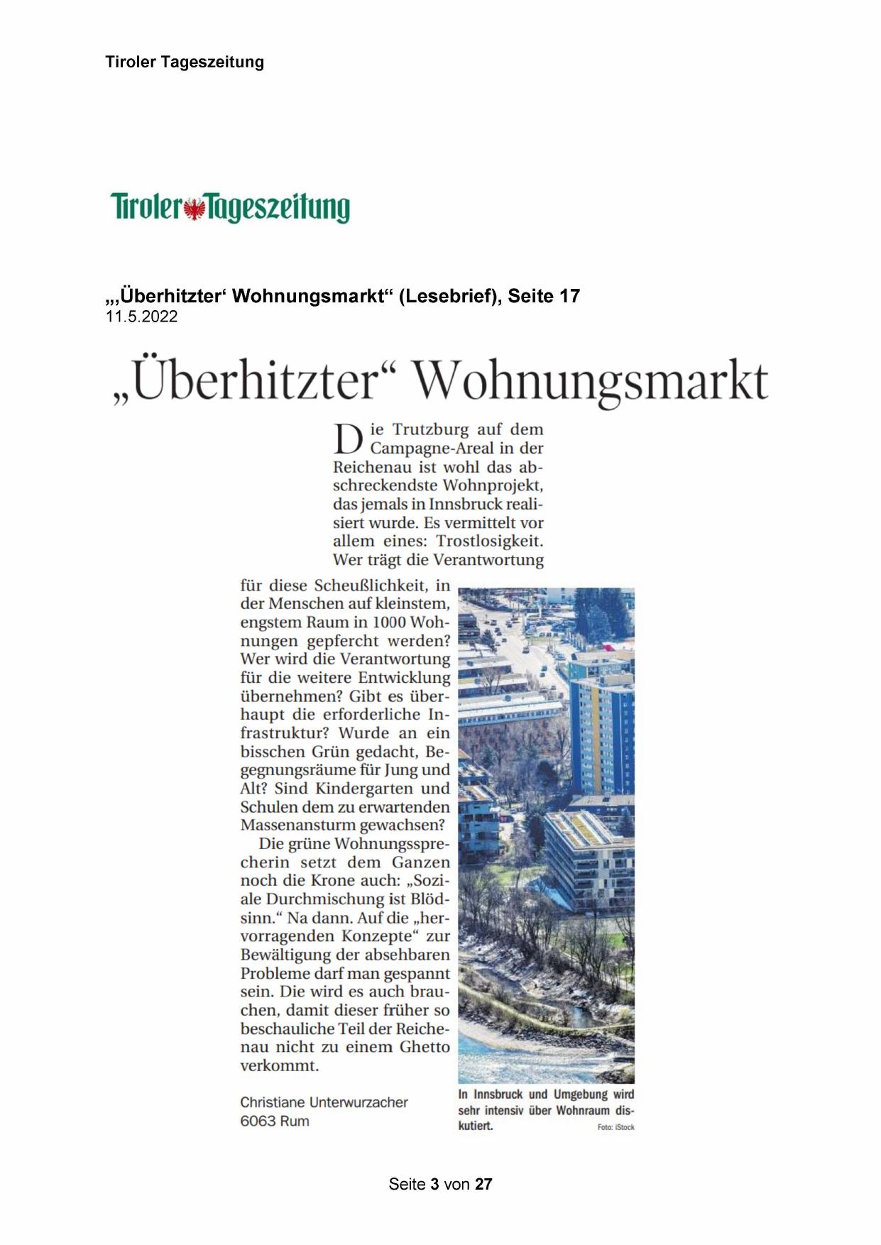 „‚Überhitzter‘ Wohnungsmarkt“ (Lesebrief), Seite 17