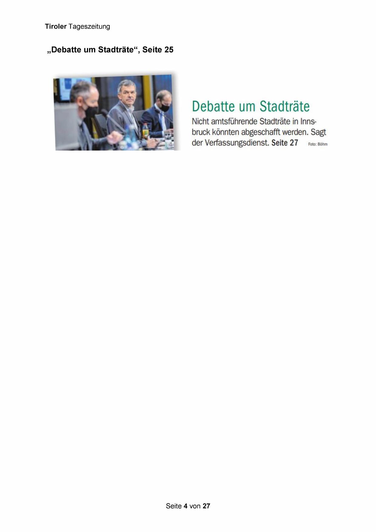 Nicht amtsführende Stadträte in Innsbruck könnten abgeschafft werden. Sagt