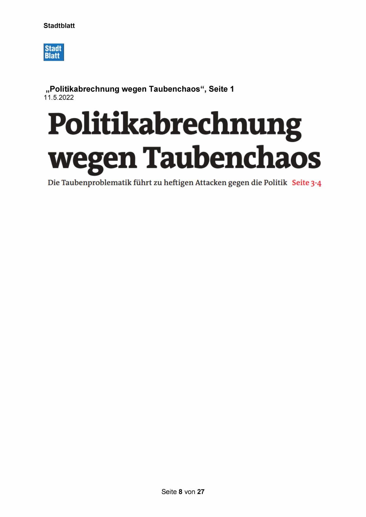„Politikabrechnung wegen Taubenchaos“, Seite 1