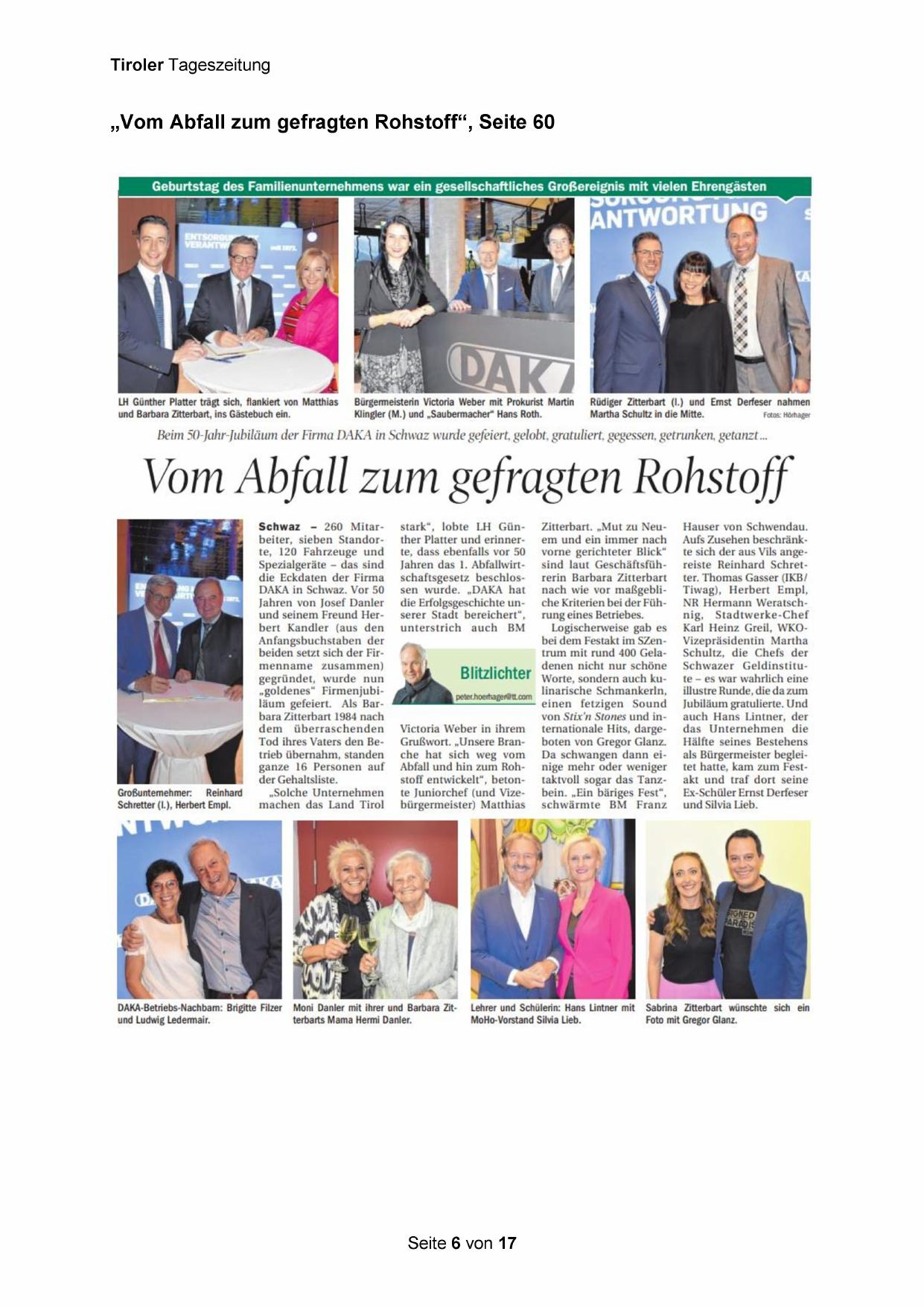 Beim 50-Jahr-Jubiläum der Firma DAKA in Schwaz wurde gefeiert, gelobt, gratuliert, gegessen, getrunken, getanzt...