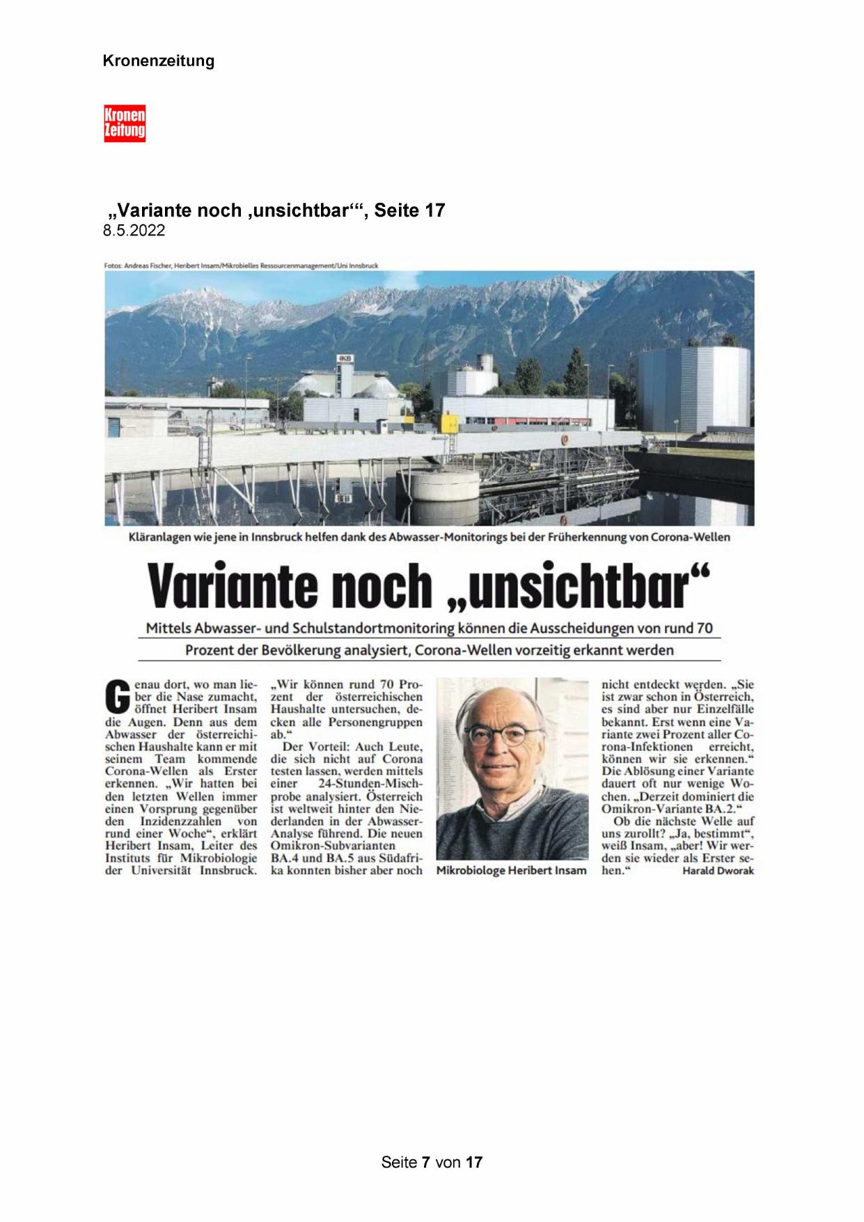 Abwasser der Öösterreichischen Haushalte kann er mit