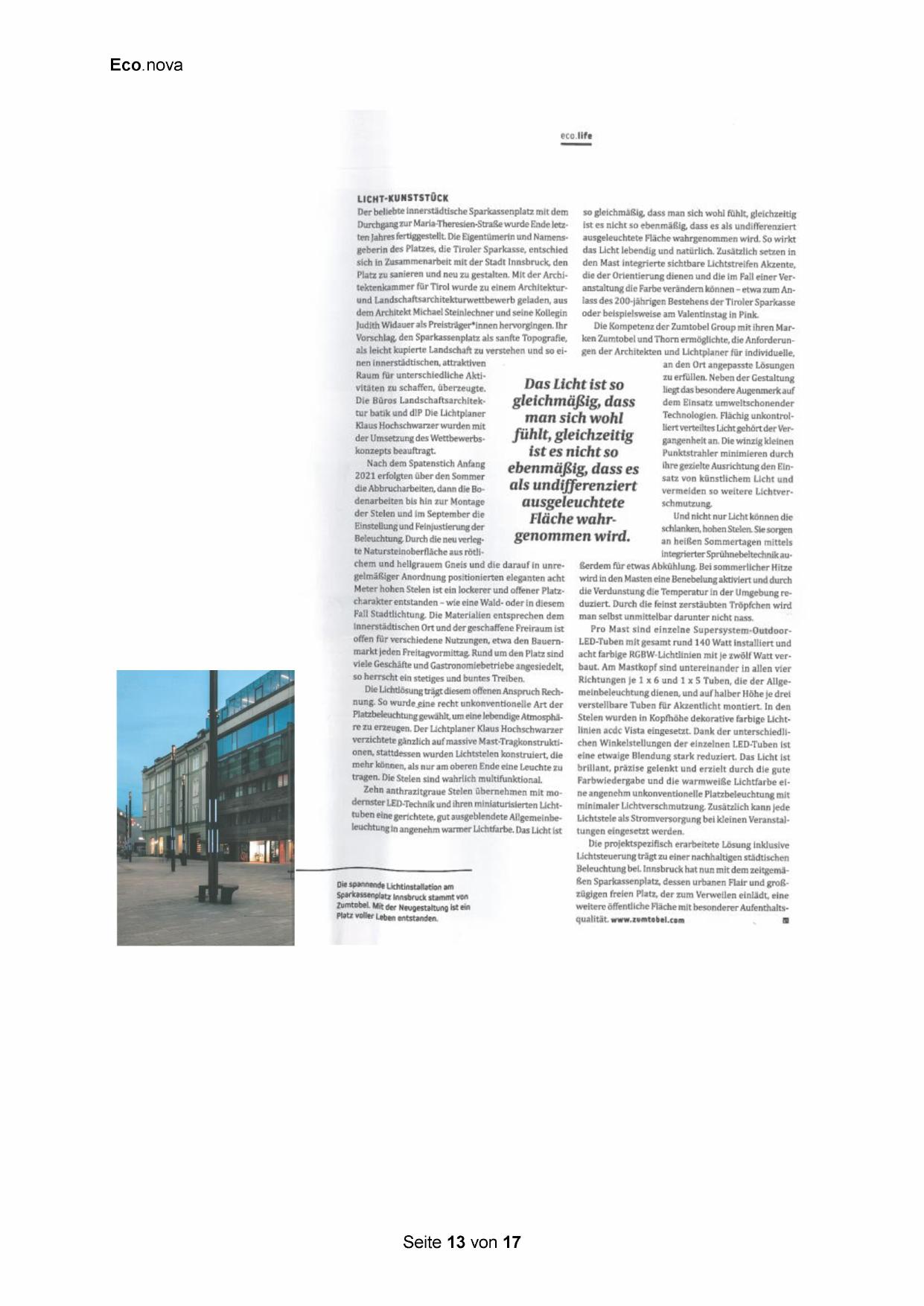 Beleuchtung bei. Innsbruck hat nun mit dem zeitgemäßen Sparkassenplatz, dessen urbanen Flair und großzügigen freien Platz, der zum Verweilen einlädt, eine