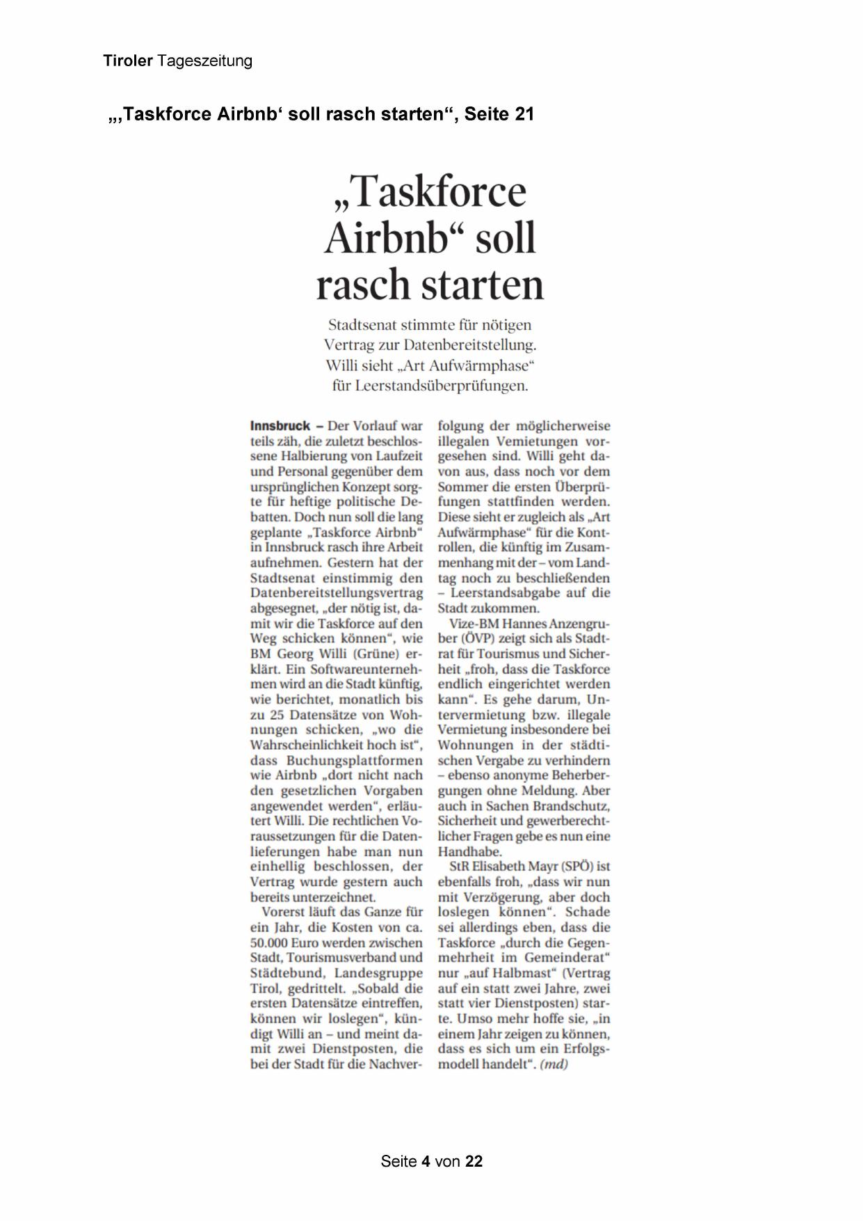 „‚Taskforce Airbnb‘ soll rasch starten“, Seite 21