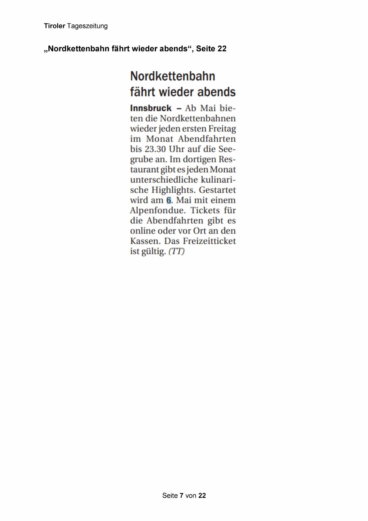 „Nordkettenbahn fährt wieder abends“, Seite 22