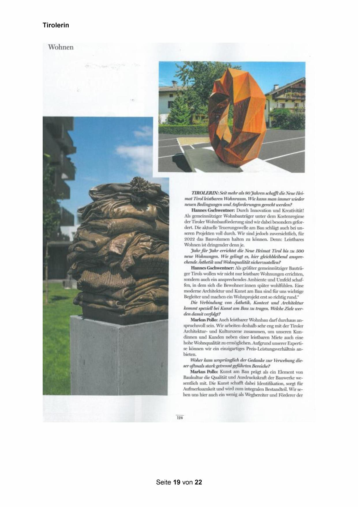 der Tiroler Wohnbauförderung sind wir dabei besonders gefordert. Die aktuelle Teuerungswelle am Bau schlägt auch bei unseren Projekten voll durch. Wir sind jedoch zuversichtlich, für