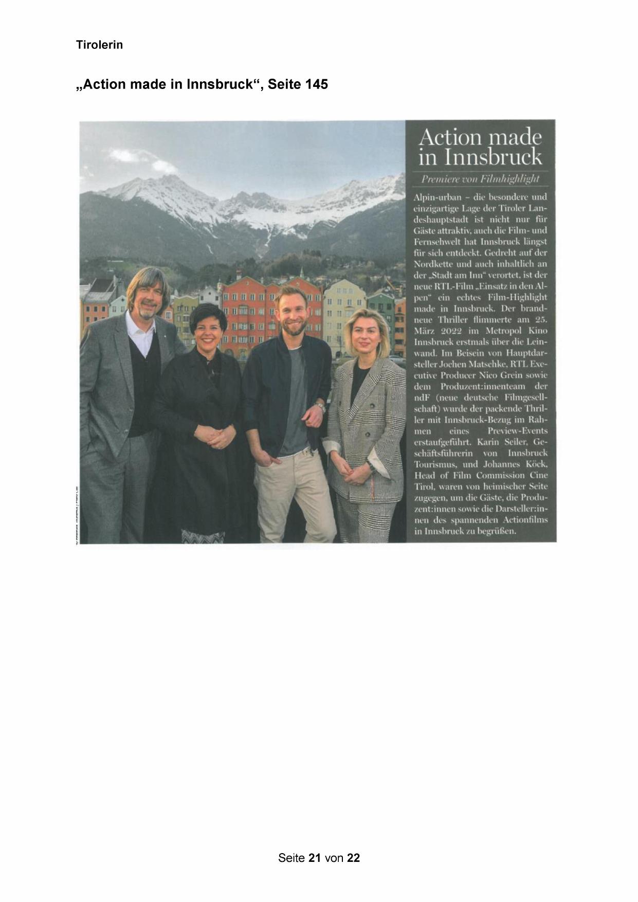 made in Innsbruck. Der brandneue Thriller flimmerte am 25.