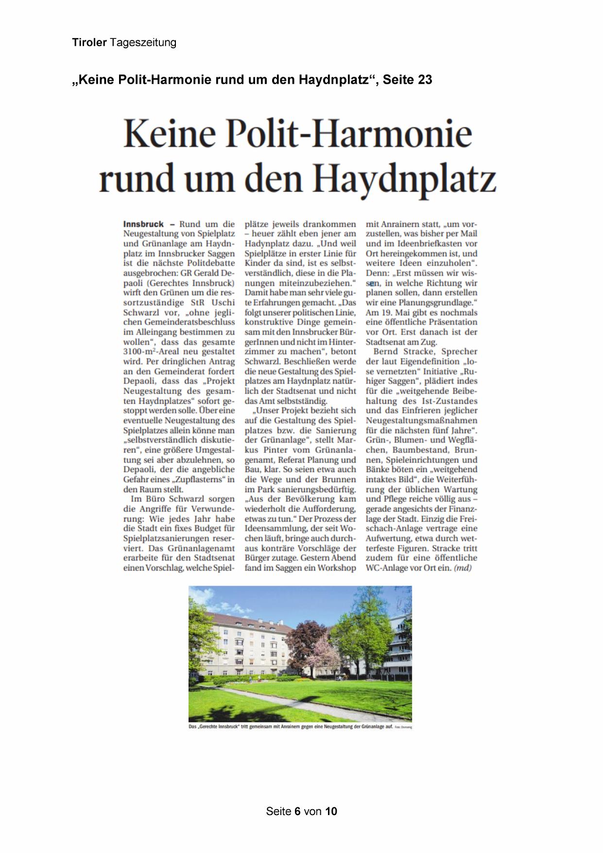 „Keine Polit-Harmonie rund um den Haydnplatz“, Seite 23