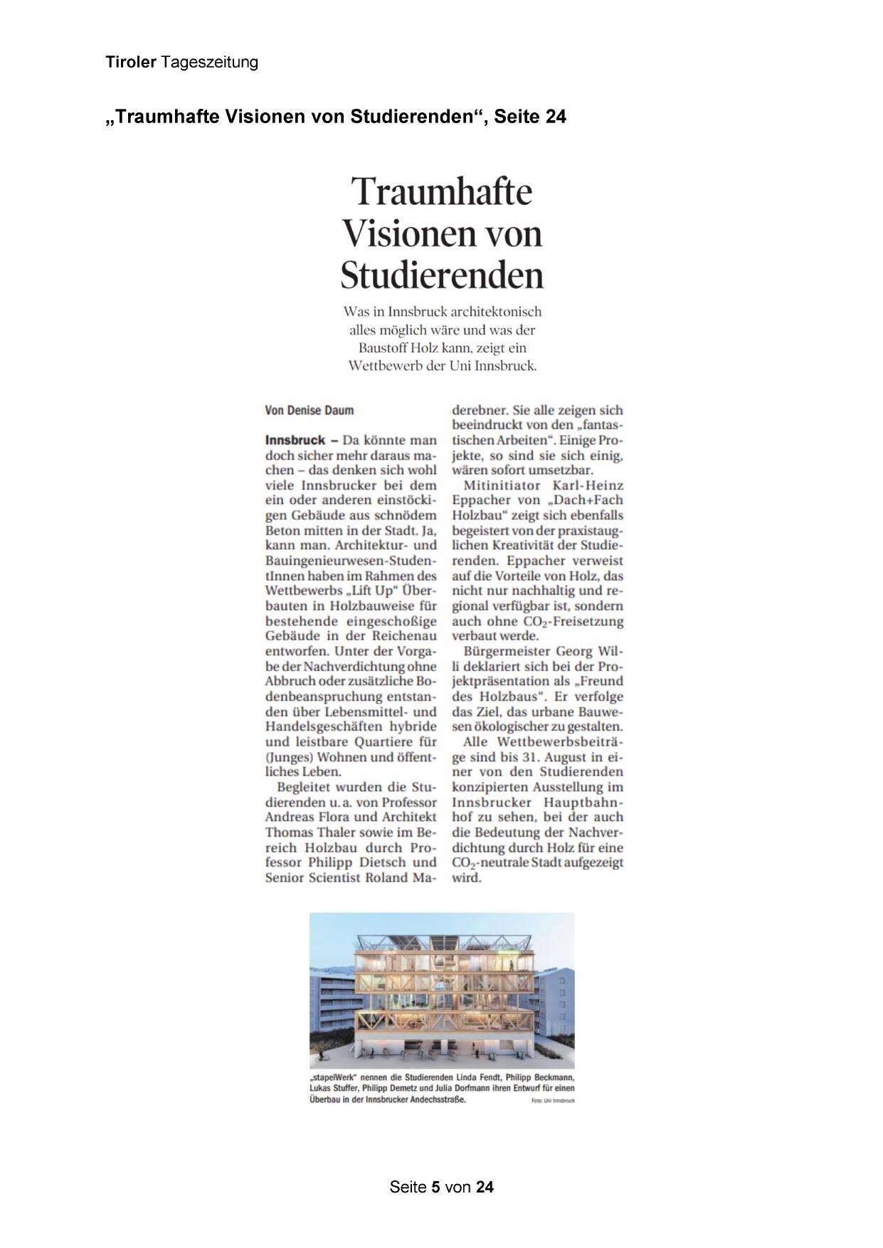 Thomas Thaler sowie im Bereich Holzbau durch Professor Philipp Dietsch und