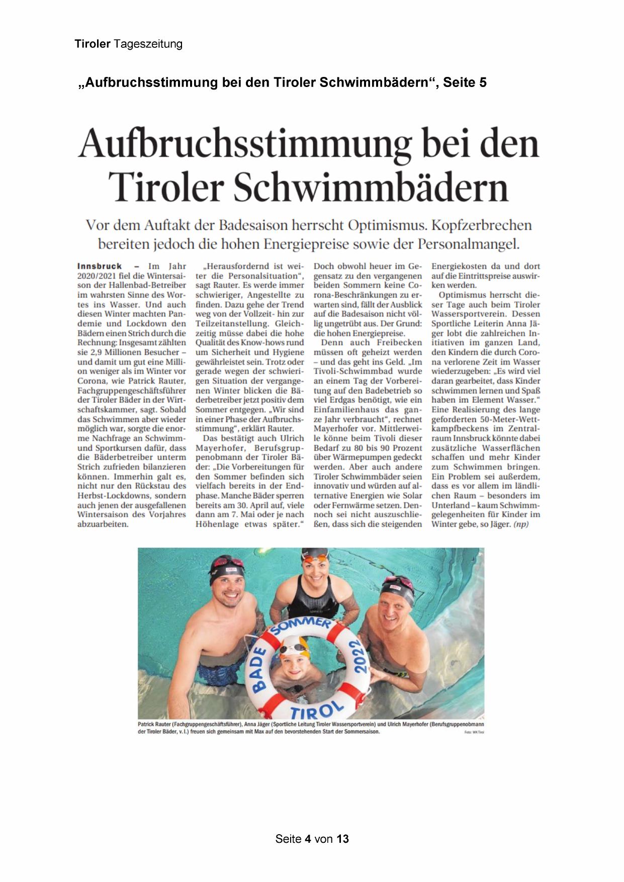 „Aufbruchsstimmung bei den Tiroler Schwimmbädern“, Seite 5